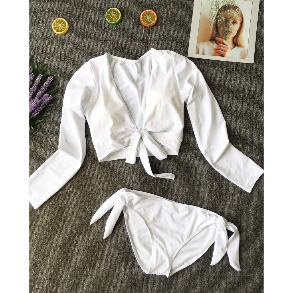 Bikini tay dài trắng cột nơ ( kèm hình thật)