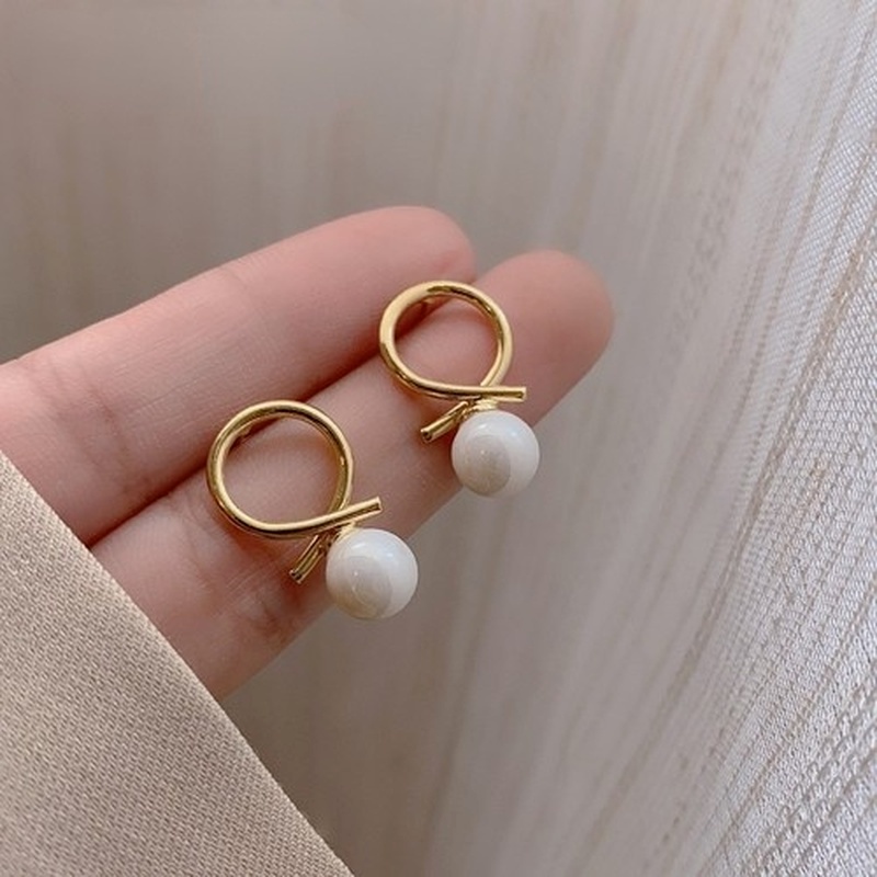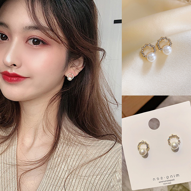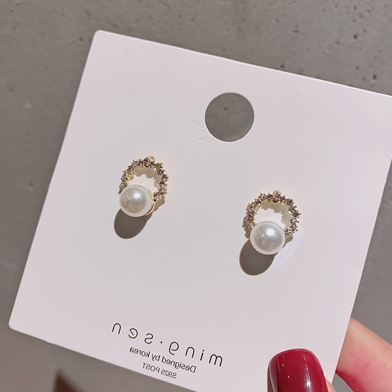 Khuyên Tai Nữ Mặt Tròn Đính Ngọc Trai Thanh Lịch Phong Cách Hàn Quốc