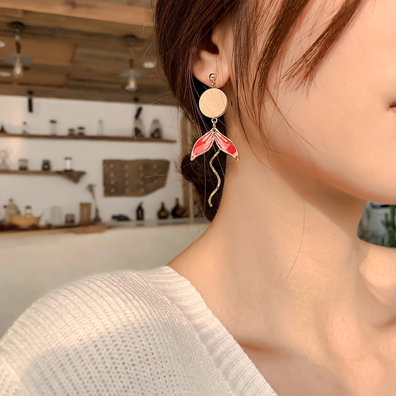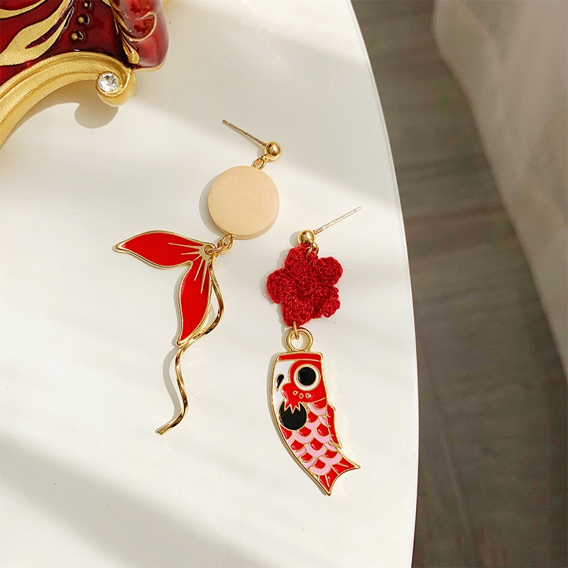 Bông tai thiết kế hình đuôi cá Koi mạ bạc 925 phong cách Trung Quốc độc đáo