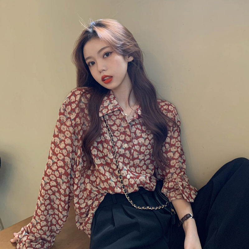 Kii Wii Áo Sơ Mi Dài Tay Dáng Rộng In Hoa Kiểu Retro Thời Trang Mùa Thu Cho Nữ