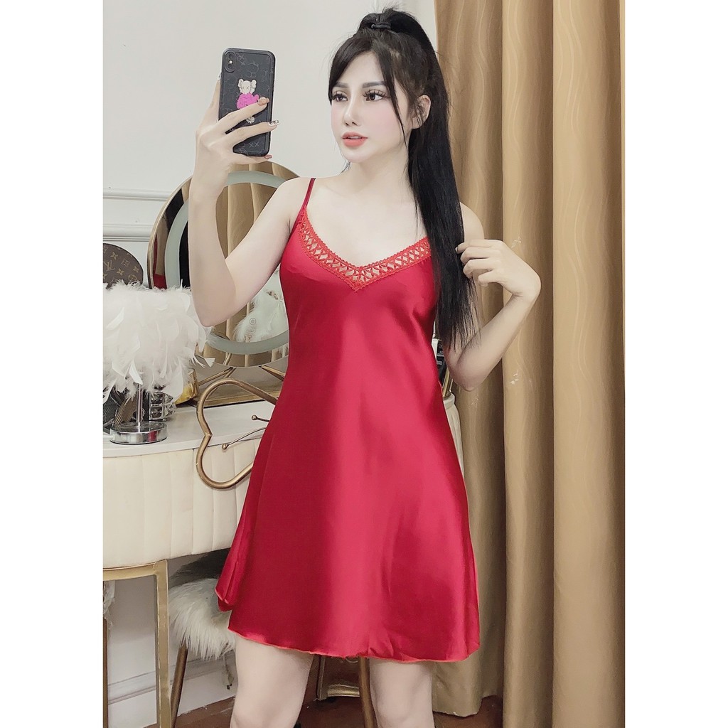 Váy Ngủ Nữ Hisexy Lụa Satin Trơn Dáng Xuông Liền Thân MD07