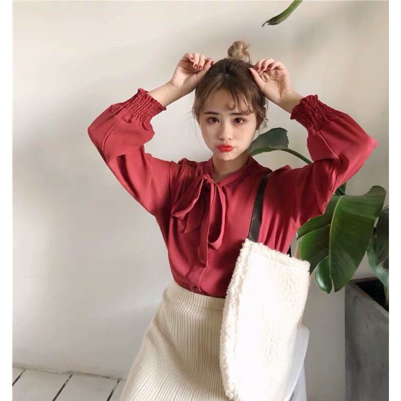 Áo sơmi von tay dai phối bo kết hợp cột nơ đầy nữ tính TTS0282
