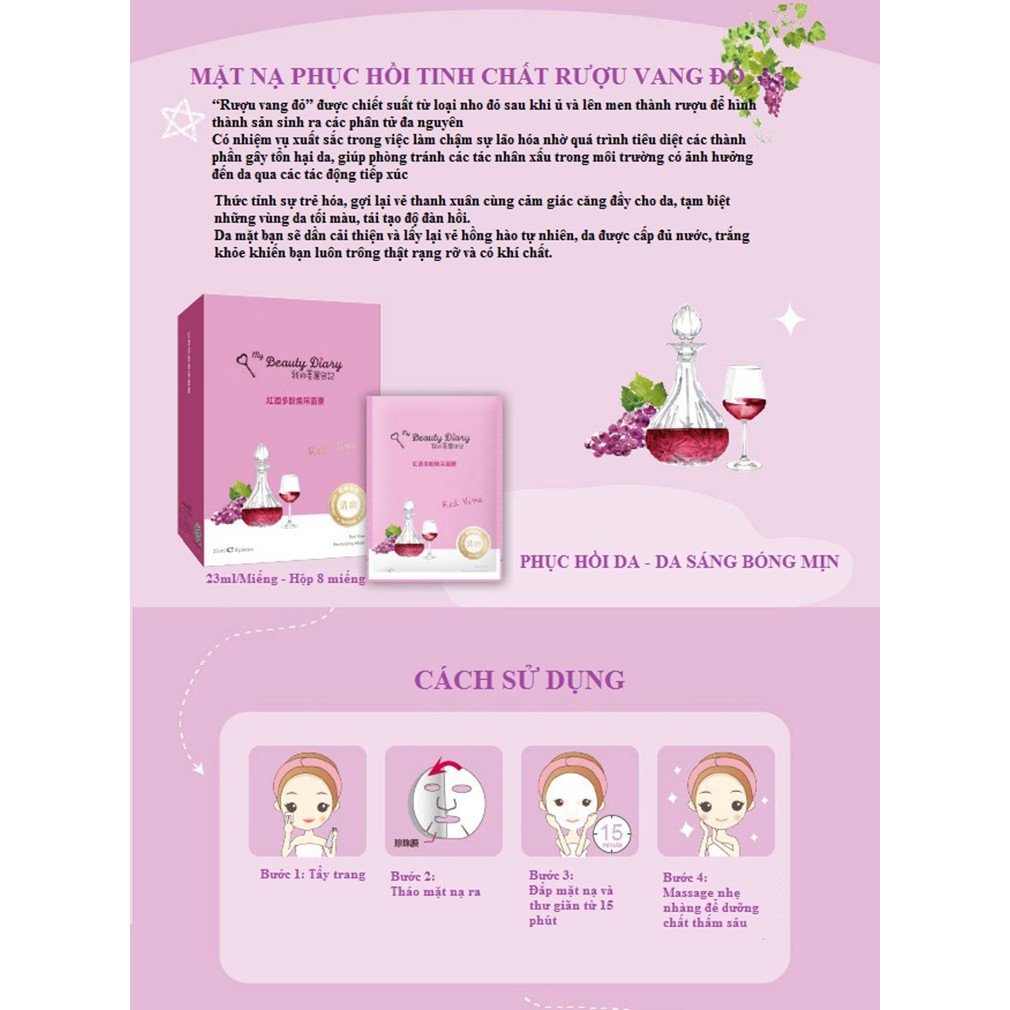Mặt Nạ Đài Loan My Beauty Diary Rượu vang Red wine - Hộp 8 miếng