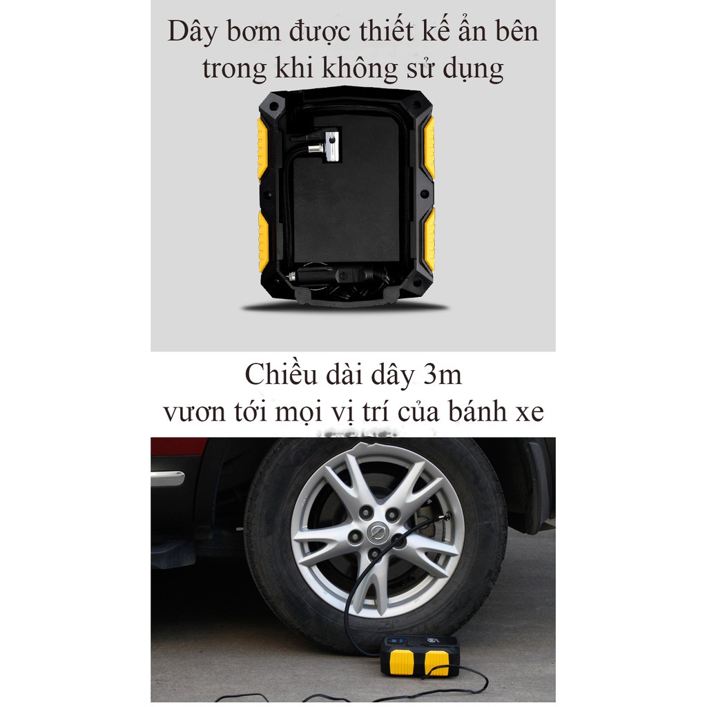 Máy bơm lốp ô tô Carzkool CZK 3609 cài được thông số bơm chế độ tự ngắt, có đèn pin chiếu sáng thích hợp bơm xe hơi