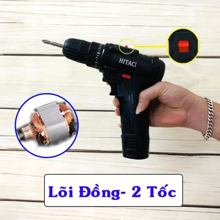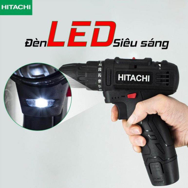 Máy khoan dùng pin cầm tay Hitachi 12V có trang bị đèn và 2 cấp tốc độ giúp bắn vít một cách chuyên nghiệp