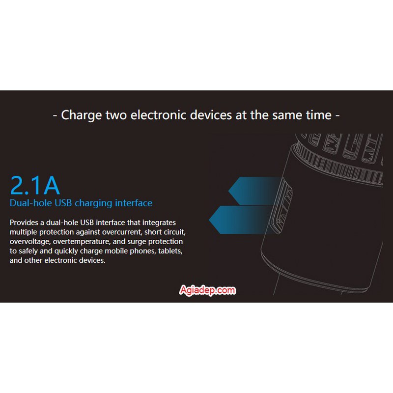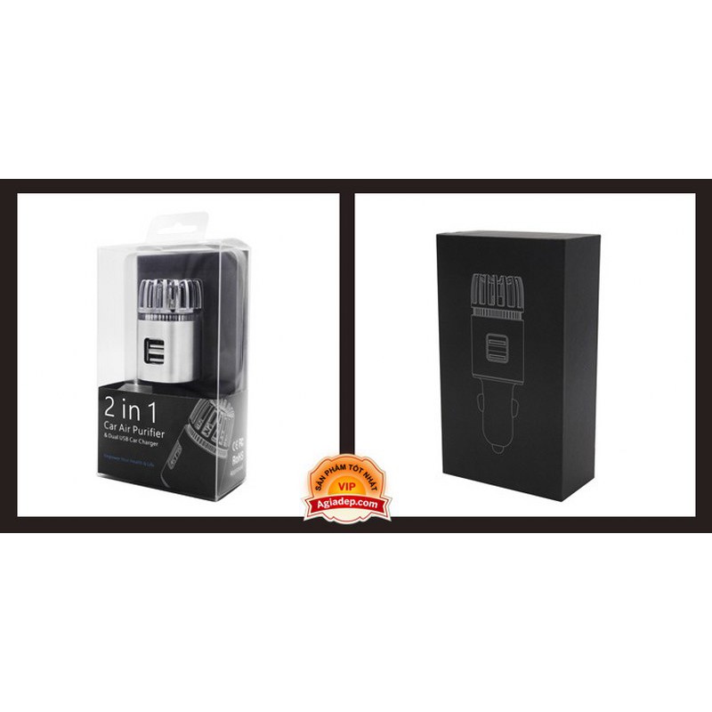 Máy lọc không khí IONKINI USA kiêm Tẩu sạc oto xe hơi 2 USB (khử mùi, làm sạc không khí)