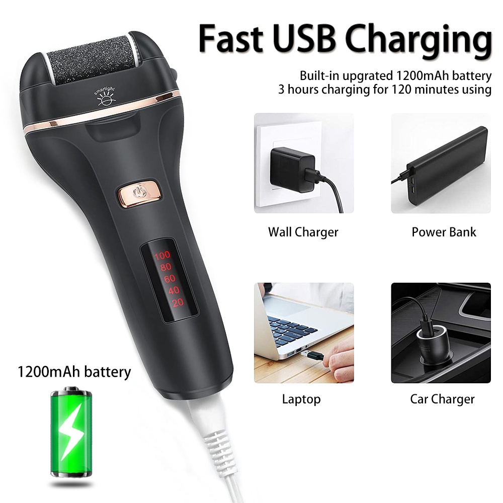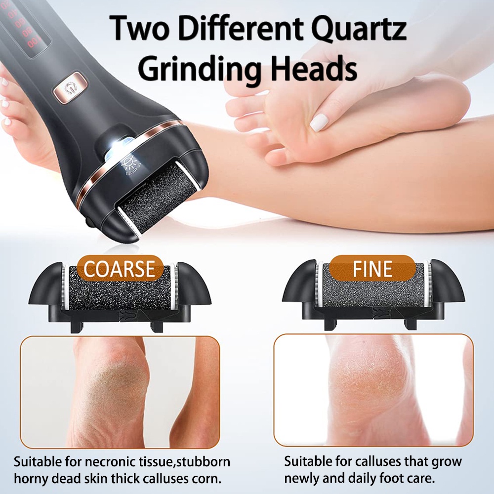 Máy mài gót chân TOGEWITHU tẩy tế bào chết da cứng có thể sạc lại với đèn LED và 2 đầu lăn