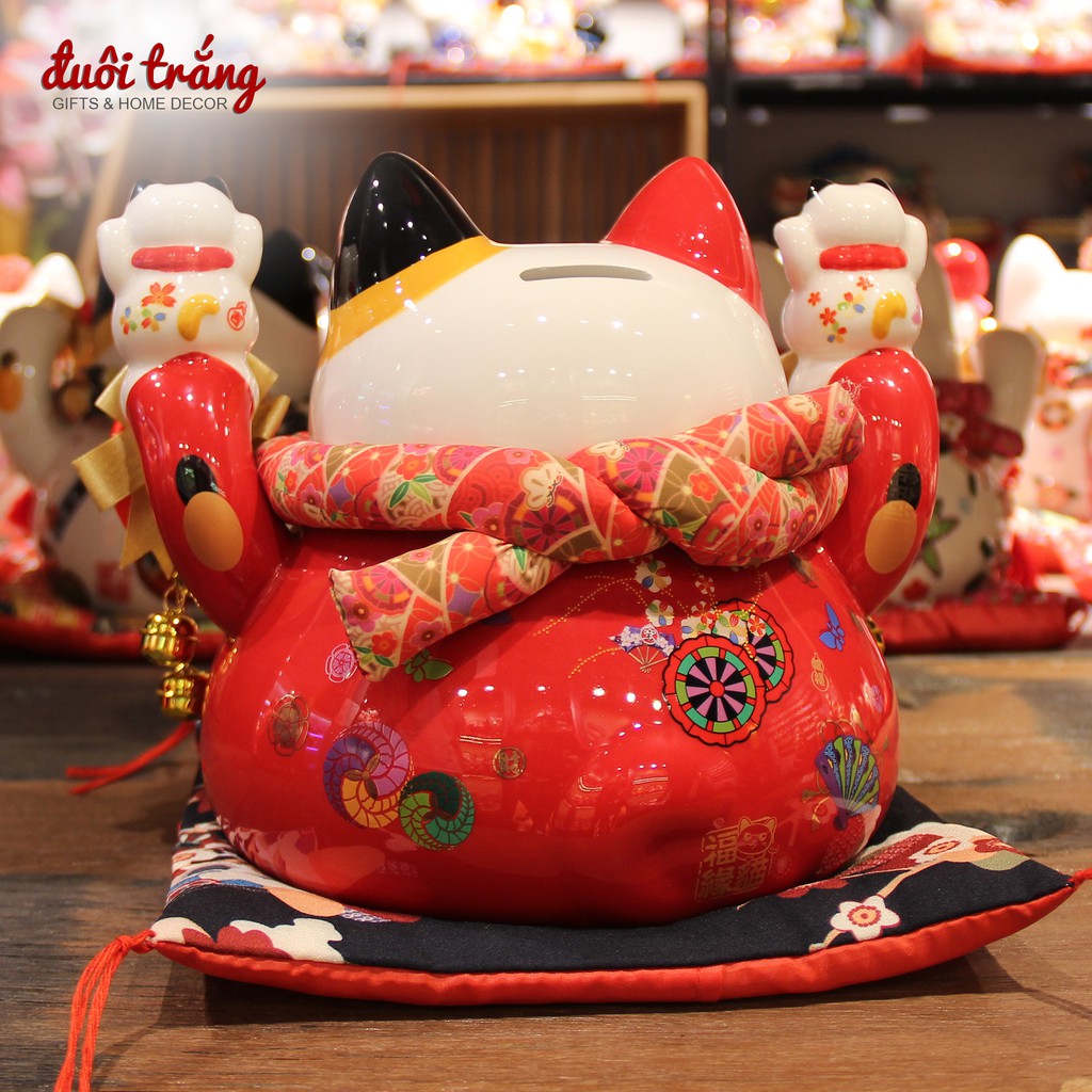 Mèo Thần tài Đỏ 23cm - Mã 2 "Chiêu Tài Tiến Bảo"