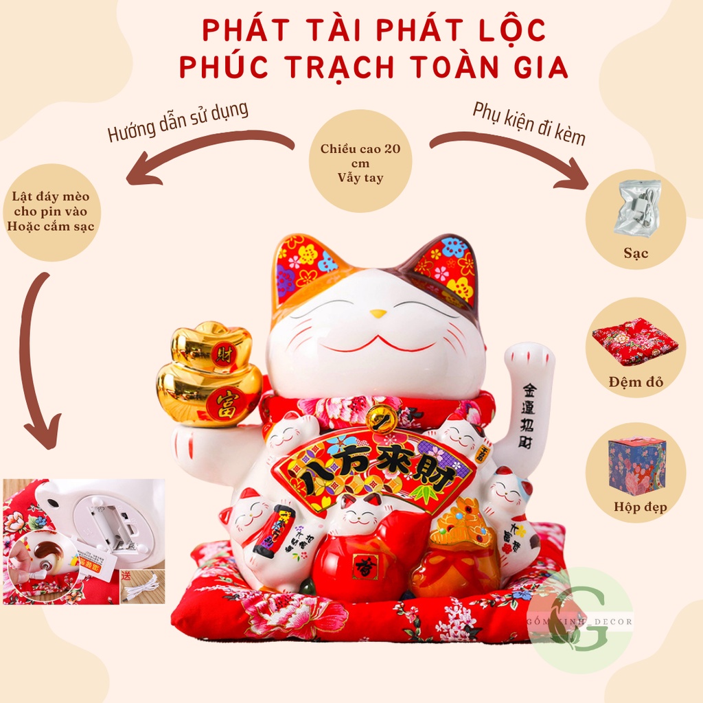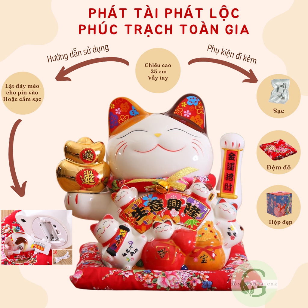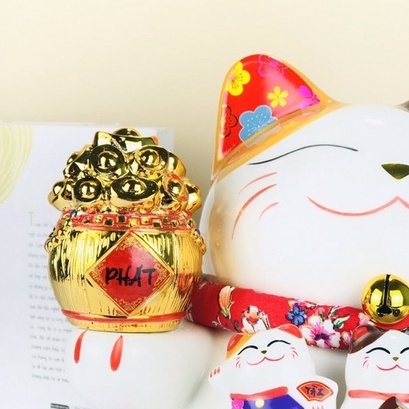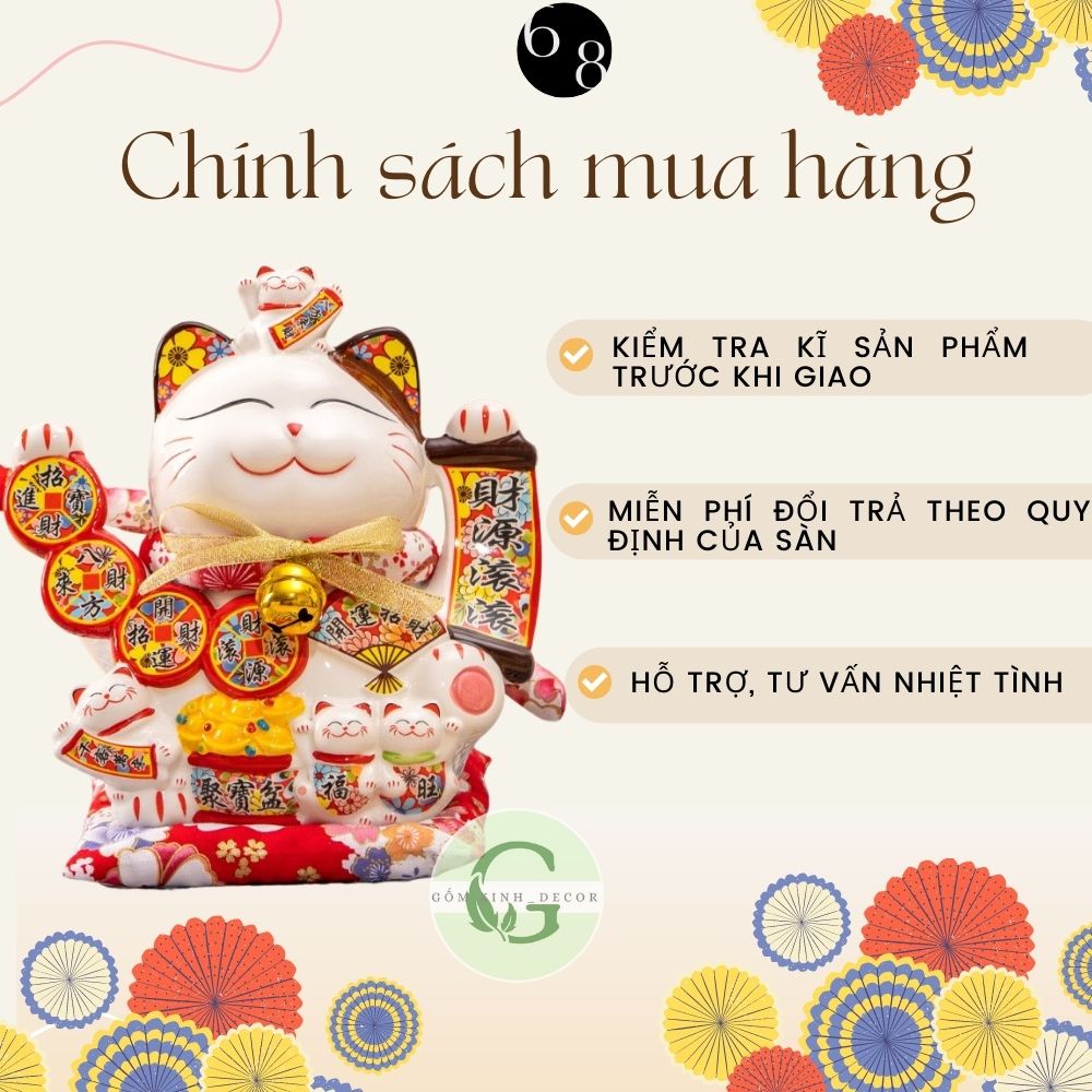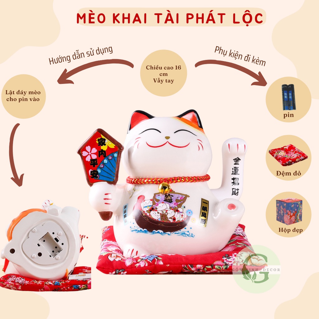Mèo Thần Tài Mèo chiêu tài lộc may mắn vẫy tay Nhật Bản Maneki Neko gốm sức cao cấp nhiều mẫu đủ size