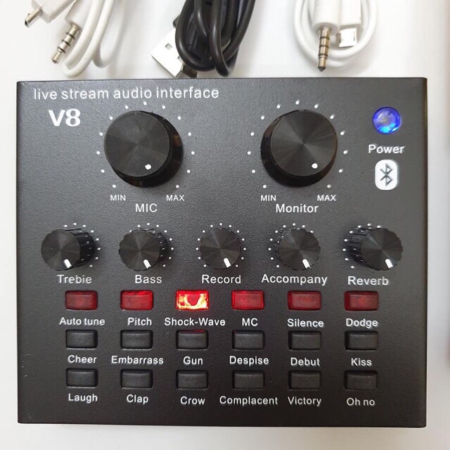 Mic Thu Âm, Hát Karaoke,Livestream online (combo Souncard V8 bluetooth,Bm900) kèm dây live