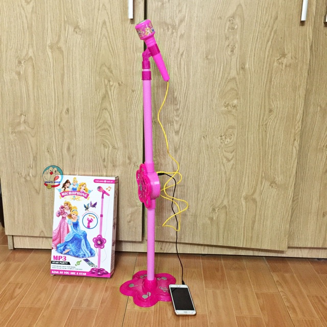 Micro kèm loa hát karaoke cho bé, dùng pin, kết nối MP3, cao 106 cm