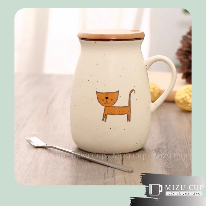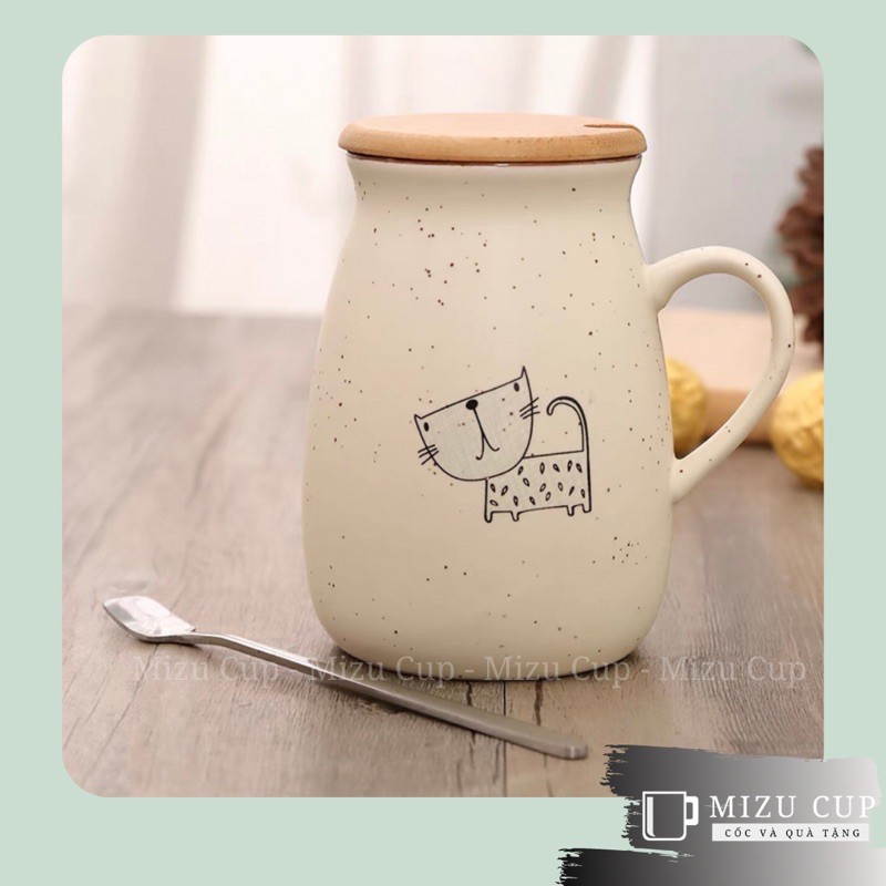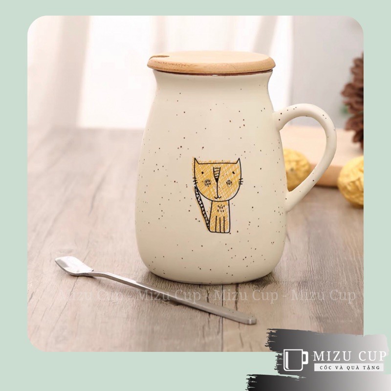 [Mizu] Cốc gốm sứ cao cấp hình mèo ngộ nghĩnh kèm nắp thìa [01]