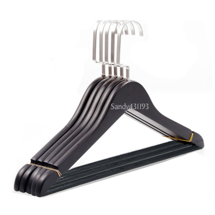 Móc gỗ thanh ngang đen treo quần áo 44.5cm ( 10 móc)