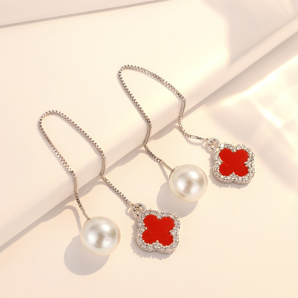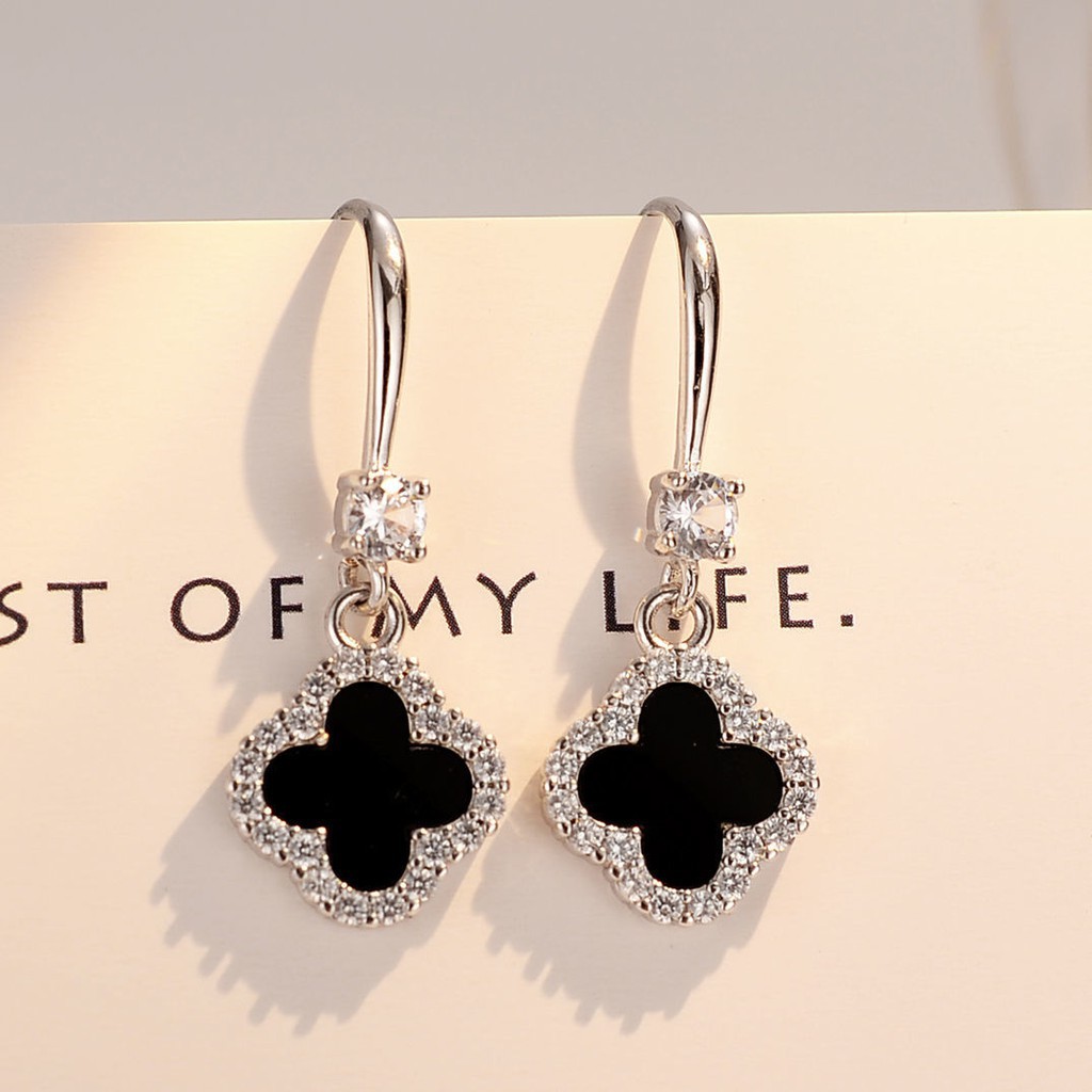 Bông tai bạc 925 hình cỏ bốn lá sang trọng