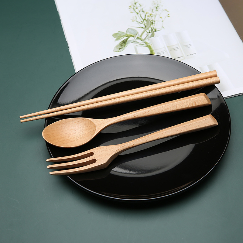 Bộ muỗng/nĩa/đũa ăn bằng gỗ sồi môi trường thiết kế thanh lịch tái sử dụng được