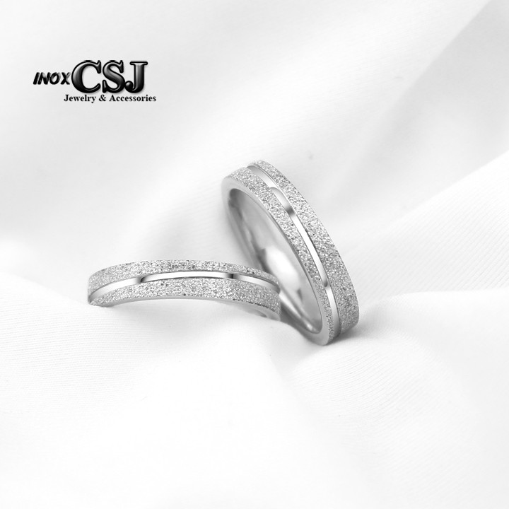 NHẪN CẶP PHUN CÁT INOX SỌC XÉO , NHẪN ĐÔI INOX NC033 KÈM KHẮC TÊN