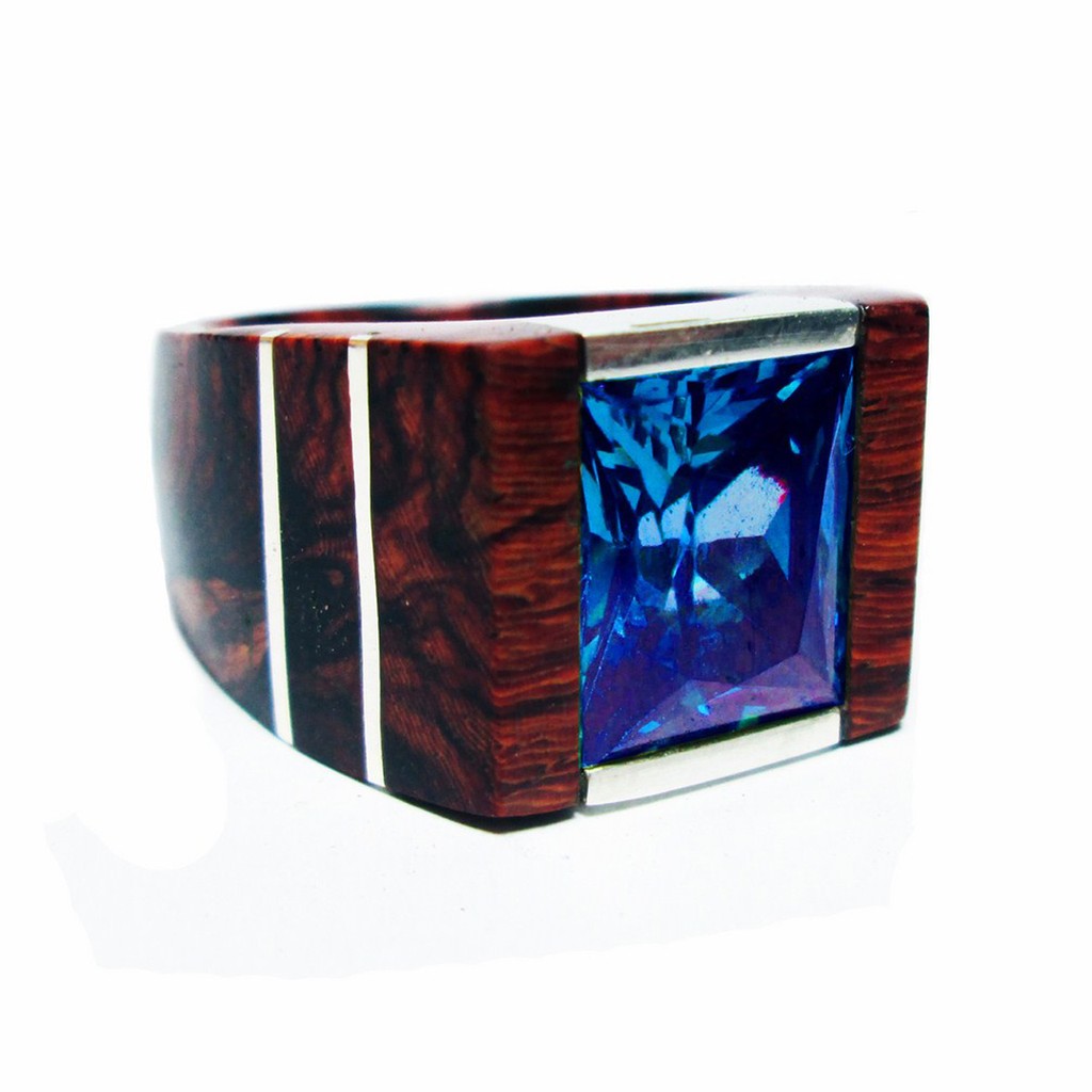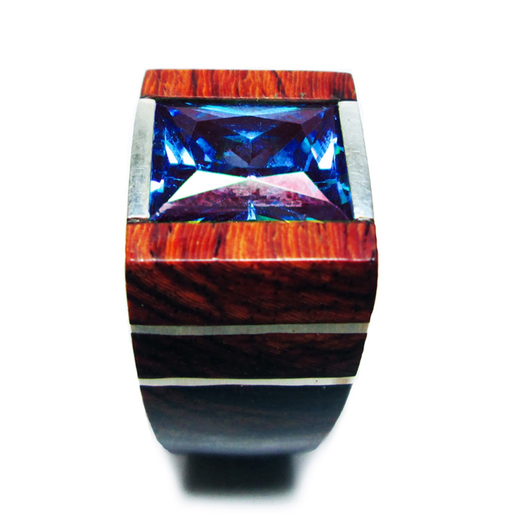 Nhẫn chế tác từ gỗ Cẩm Lai cẩn bạc I và đá Topaz