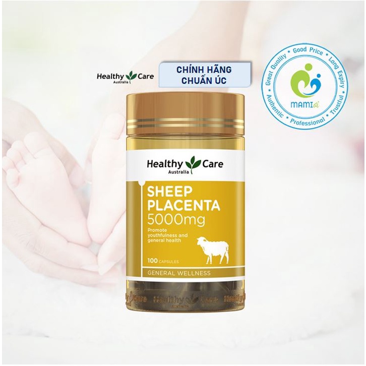 Nhau Thai Cừu (100v) giúp da sáng bóng mịn màng cho người trên 18 tuổi Healthy Care Sheep Placenta 5000mg, Úc