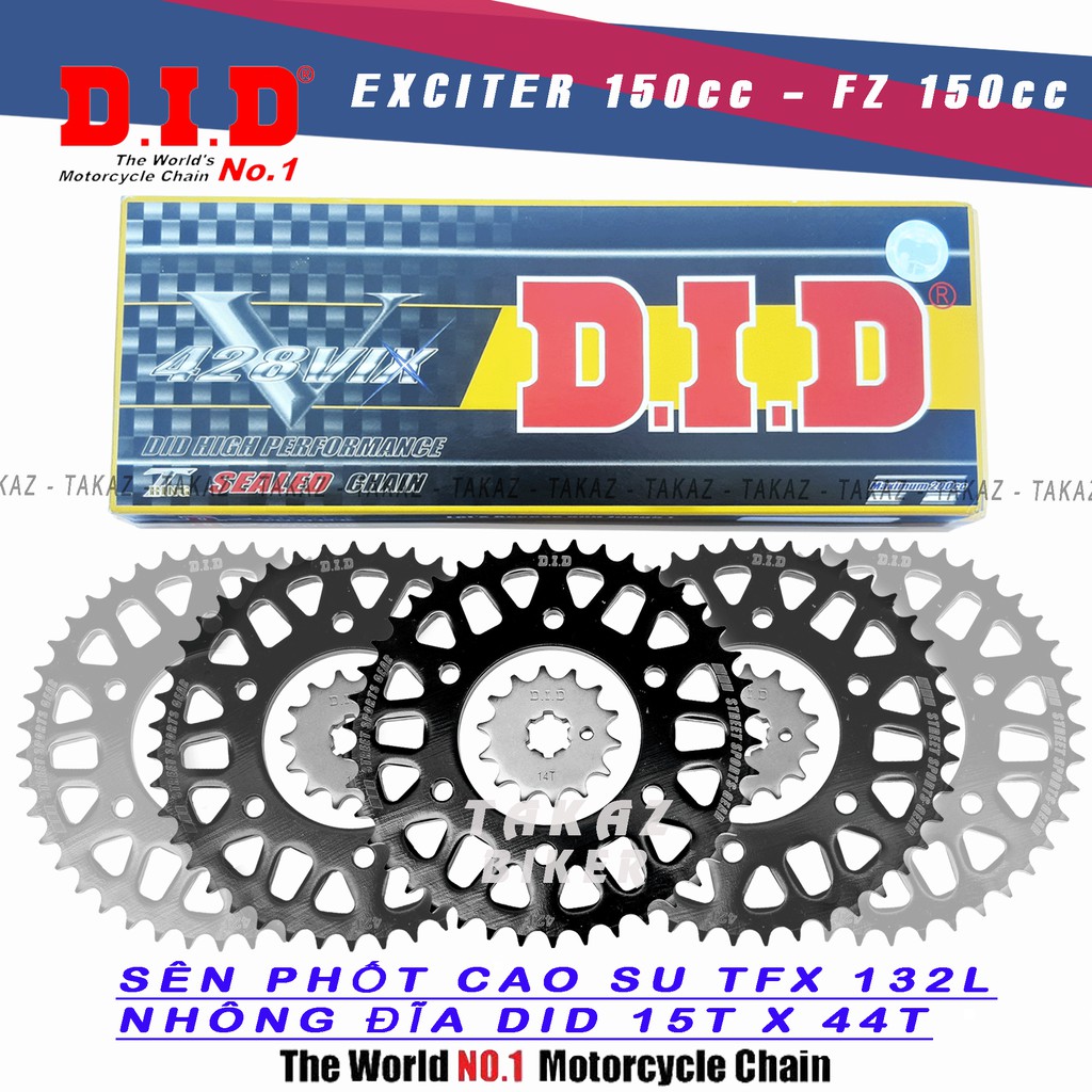 B1 [ 44T VIX ] Nhông sên dĩa DID VIX Yamaha FZ150 - Exciter150 lên thông số 15T dĩa 44T – Sên phốt cao su 132L VIX Tring