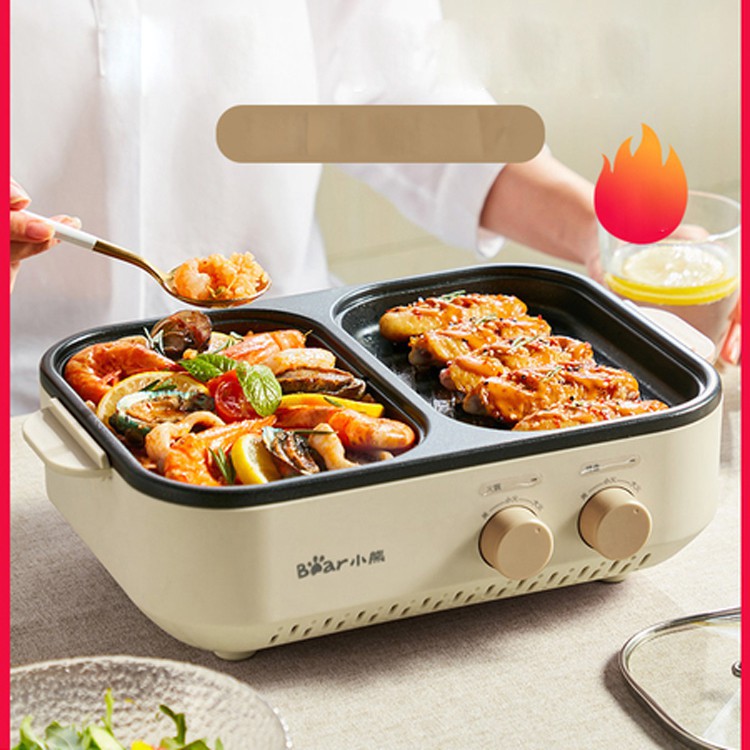 Nồi lẩu điện 2 ngăn Bear - nồi đa năng chiên xào nướng siêu bền [hàng chính hãng] - Bảo Hành 12 tháng