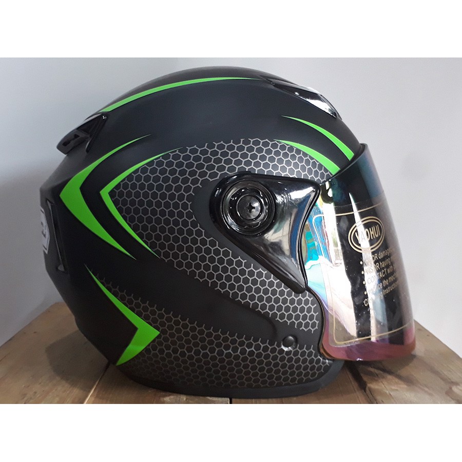 NÓN BẢO HIỂM NAPOLI 039 - ĐEN SỌC XANH LÁ (bảo hành 6 tháng)