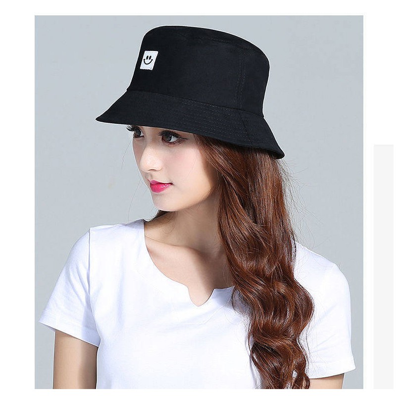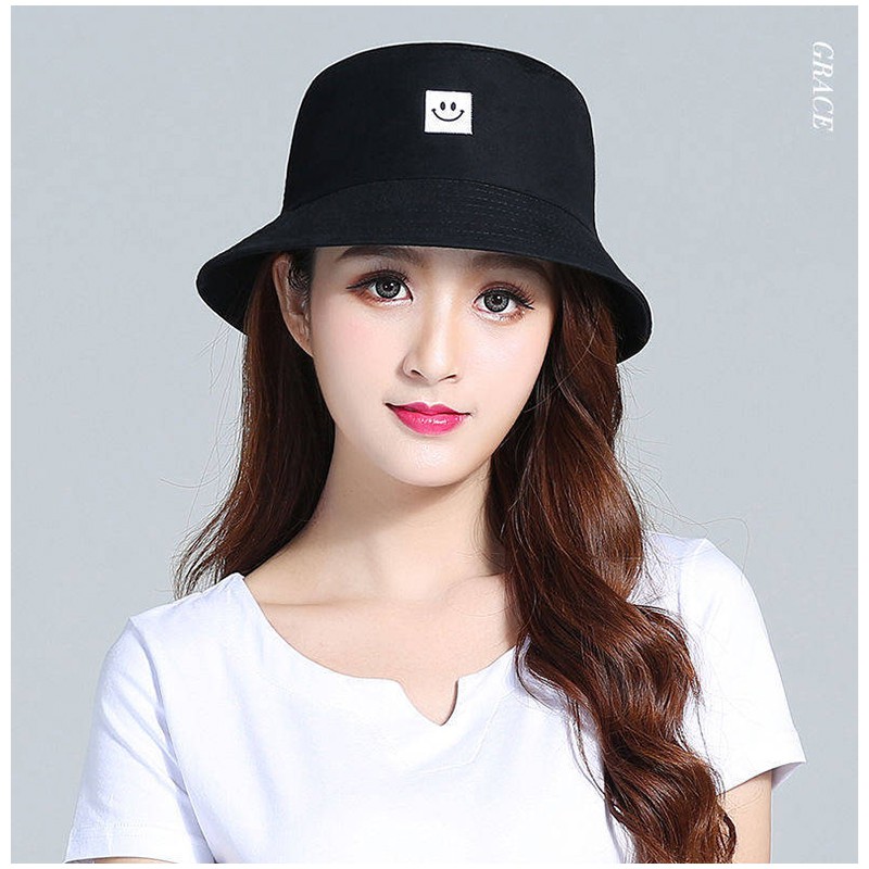 Nón bucket màu trơn icon thêu kute - Nón tai bèo thời thượng
