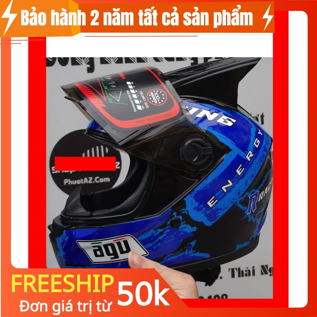NÓN CẢ ĐẦU AGU RACING ENERGY XANH NƯỚC + Đuôi gió AGV và sừng rồng + TÚI ĐỰNG MŨ SỐ LƯỢNG CÓ HẠN