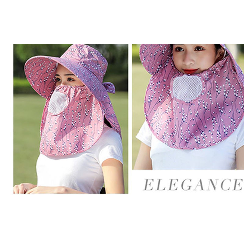 Nón chống nắng vành rộng mát có khẩu trang 2 lớp bảo vệ sức khỏe mũ che nắng kèm dây thắt dễ dàng sử dụng