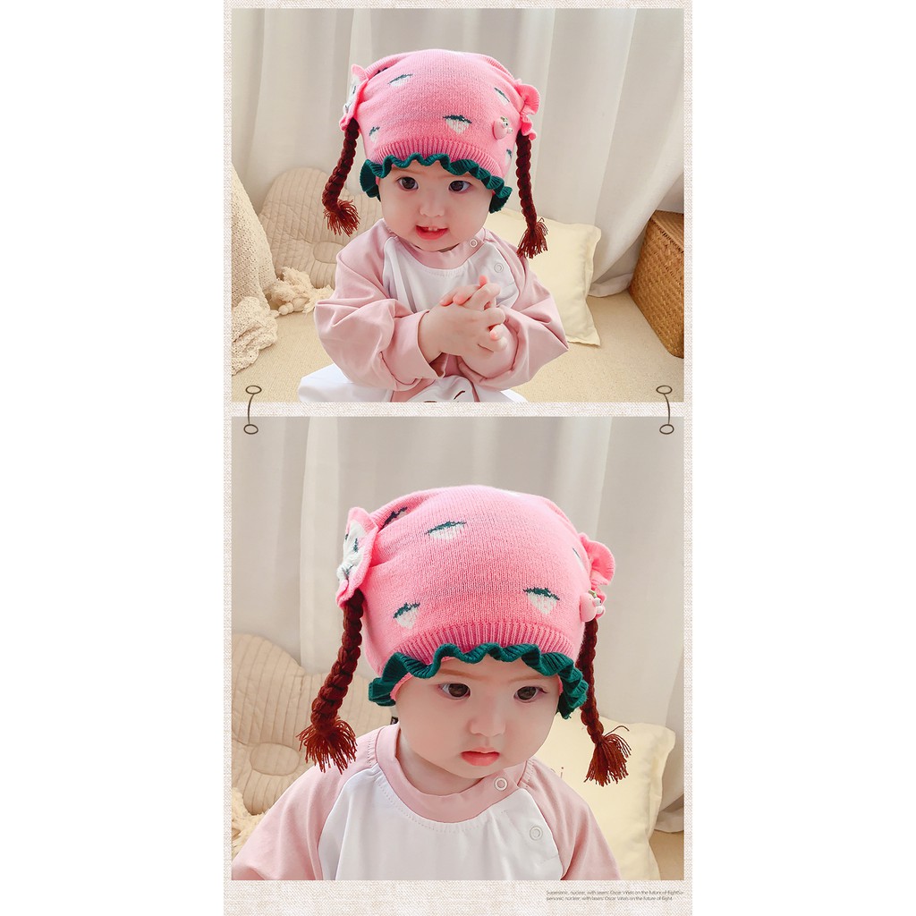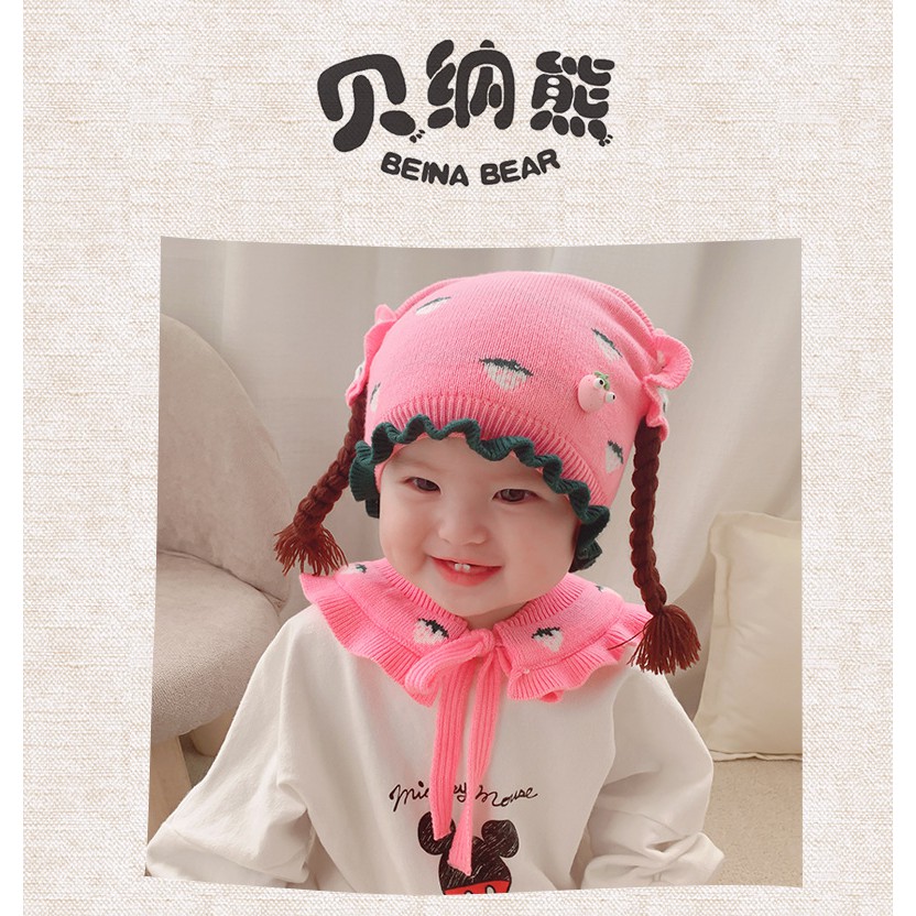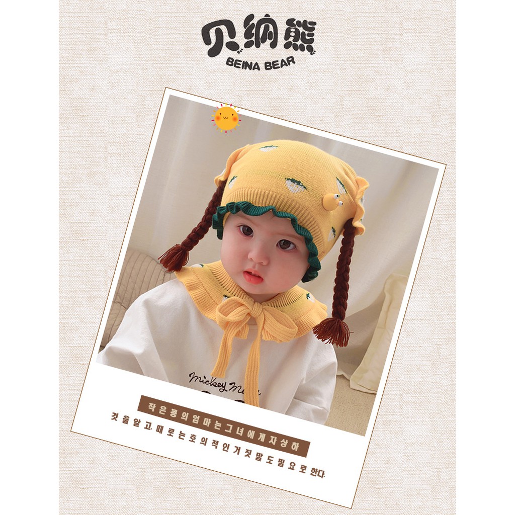 nón len tóc giả bé gái kèm khăn yếm cổ