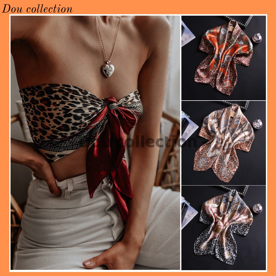 [NowShip2h] Khăn Làm Áo (Khăn Lụa Vuông) Yếm, Quàng Đầu Hotrend Họa Tiết Da Báo - Chất Liệu Satin - 90x90cm - Mã K9004