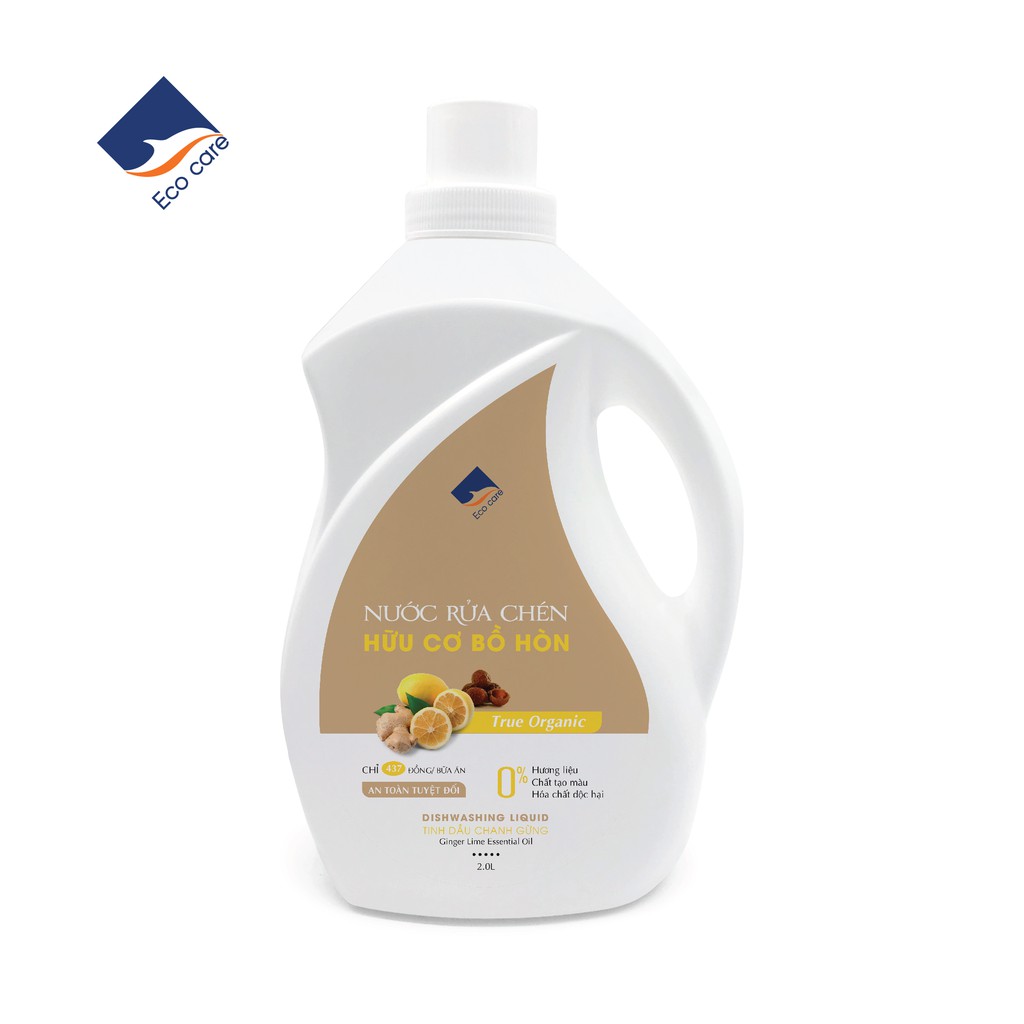 Nước Rửa Chén Bồ Hòn Hữu Cơ ECOCARE 2 lít - Sạch dầu mỡ, tinh dầu khử mùi, tiết kiệm 30% nước