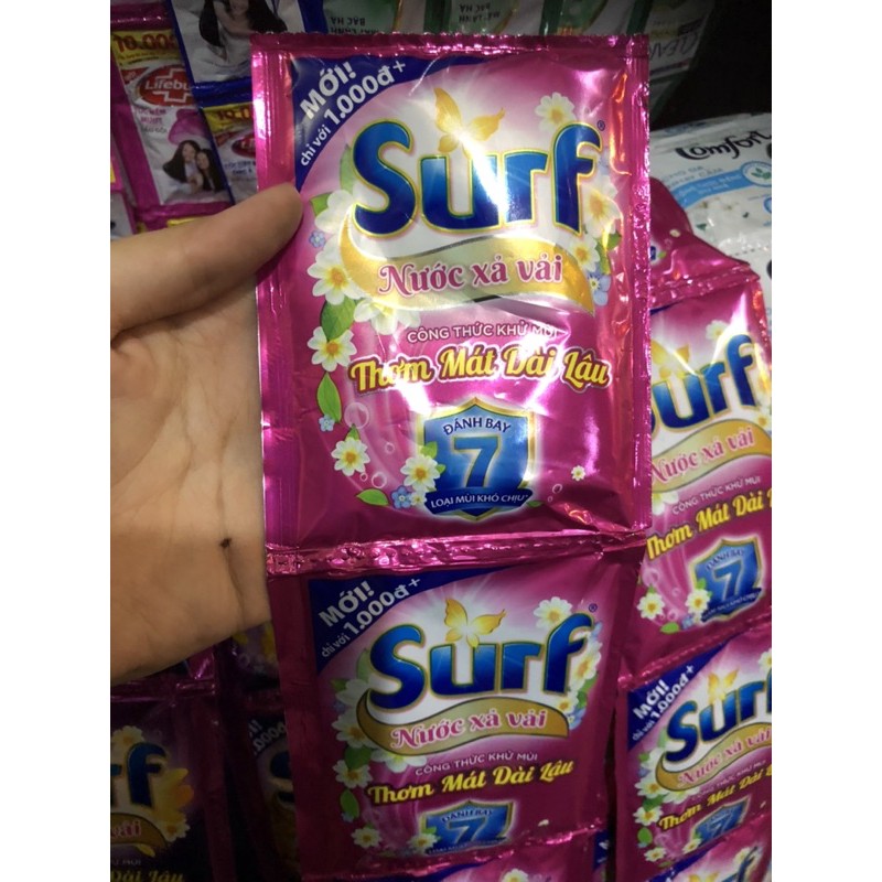 Nước Xả Vải SURF dây 10 gói Khử Mùi Hương Hoa Lan Tỏa (Hồng) và Hương Hoa Lôi Cuốn (Tím)