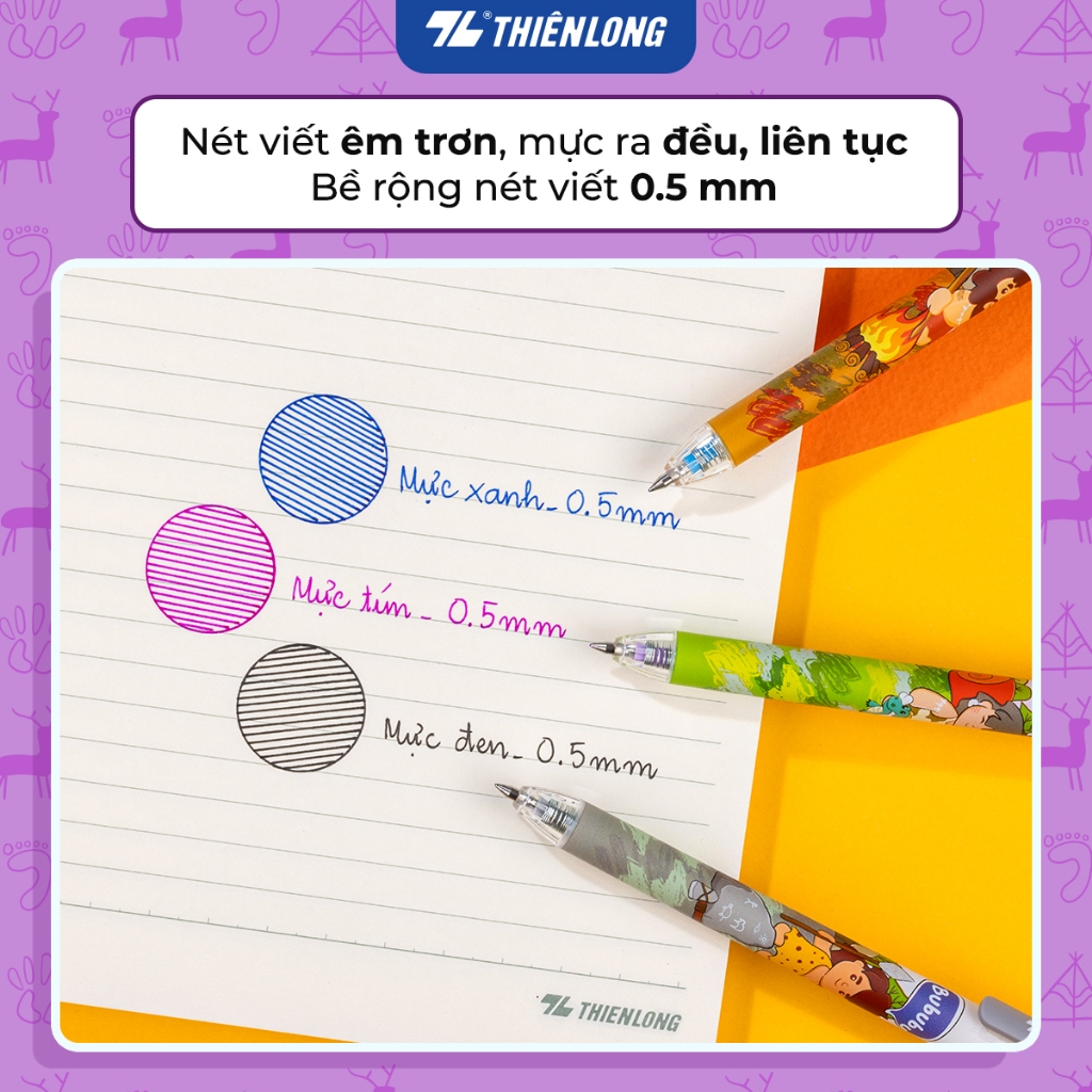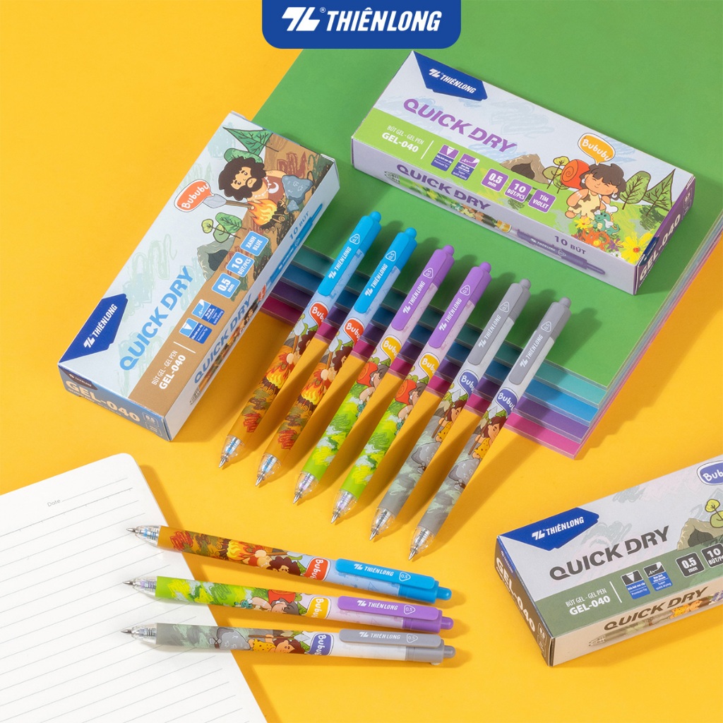 Combo 5/10/20 Bút gel Quick Dry Thiên Long GEL-040 mực khô nhanh, đầu bi cao cấp, thân bút in hình nhân vật ngộ nghĩnh