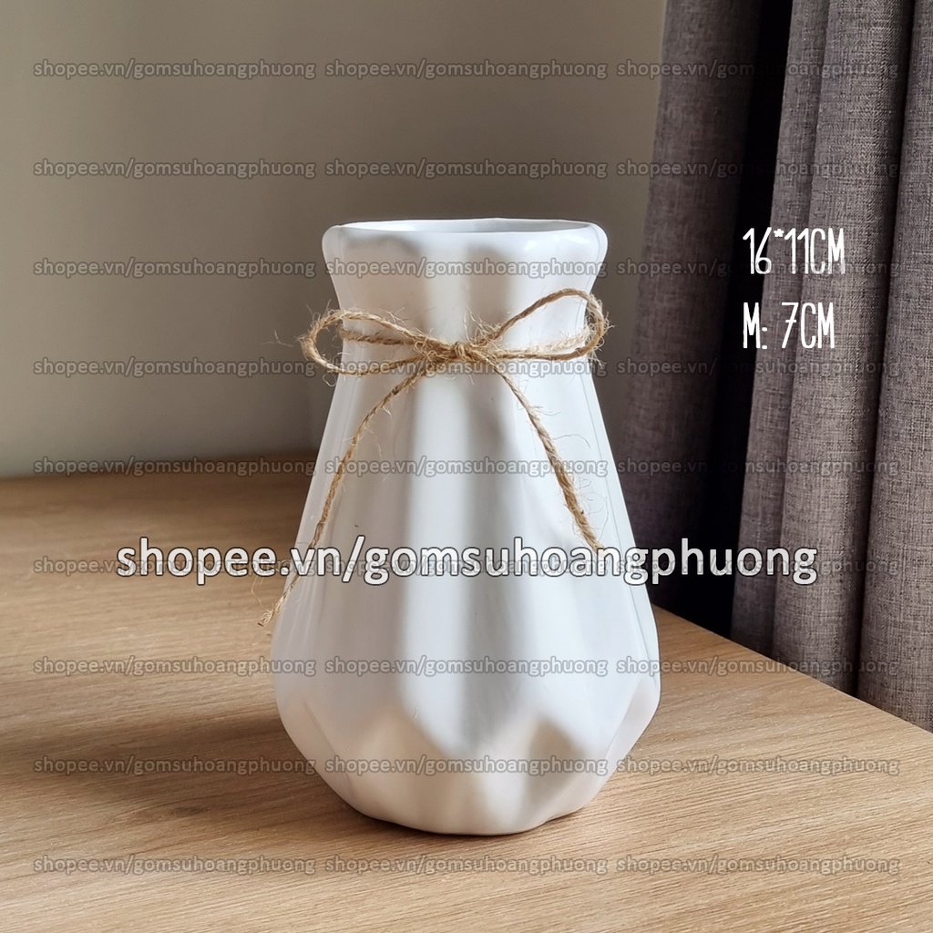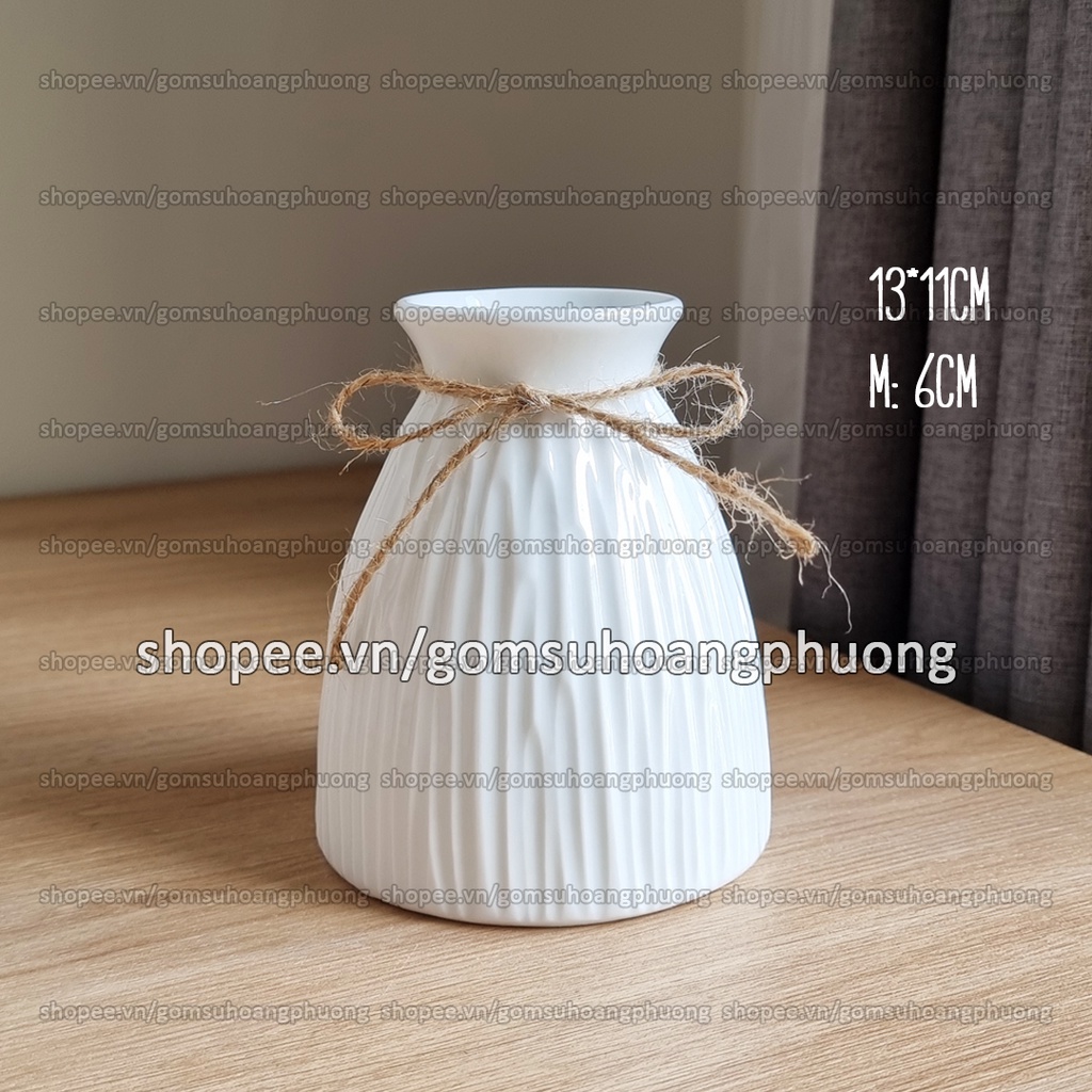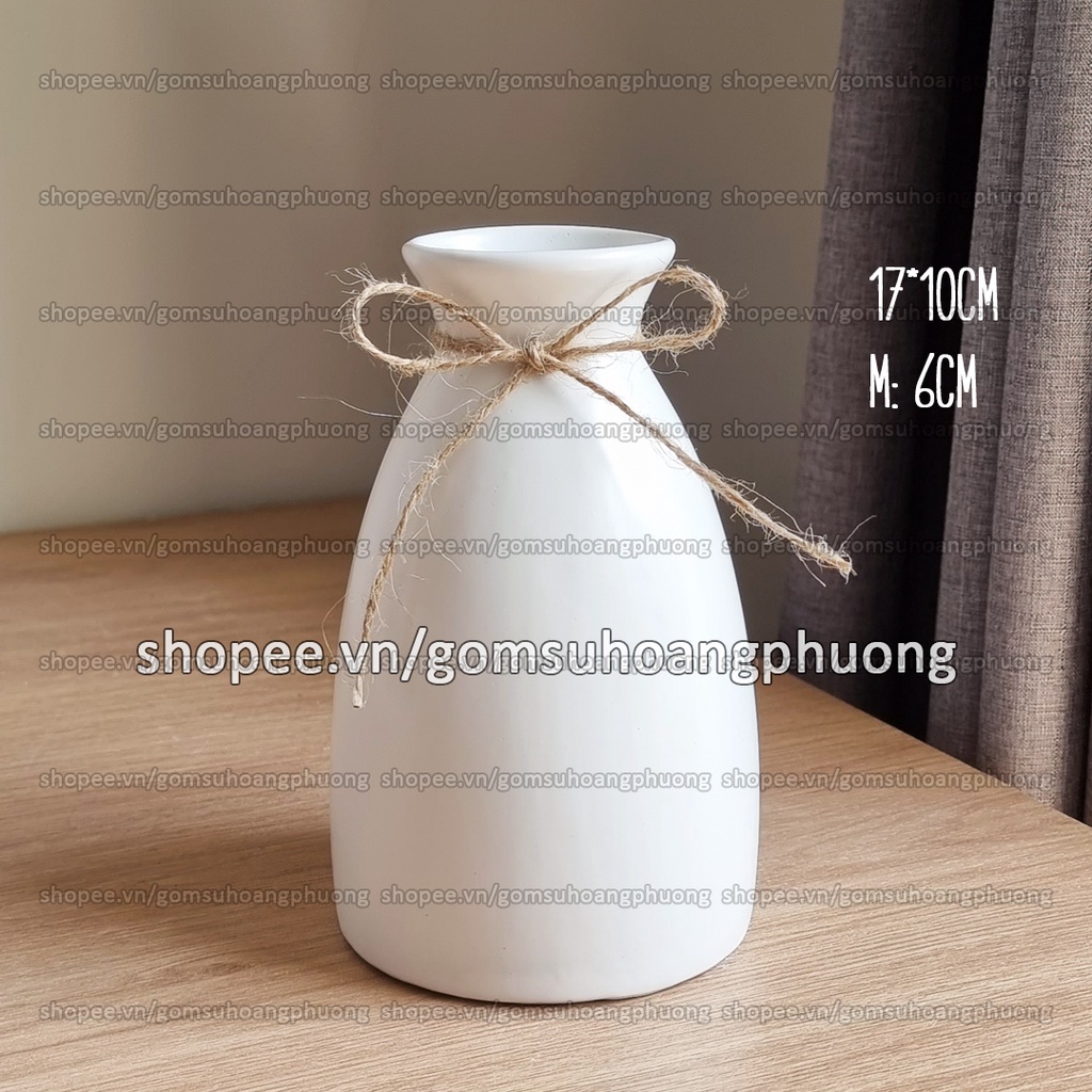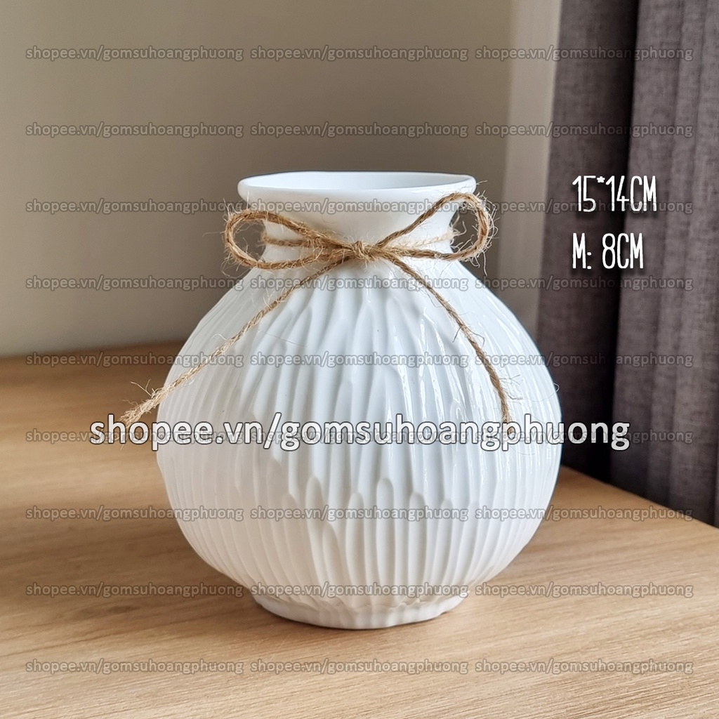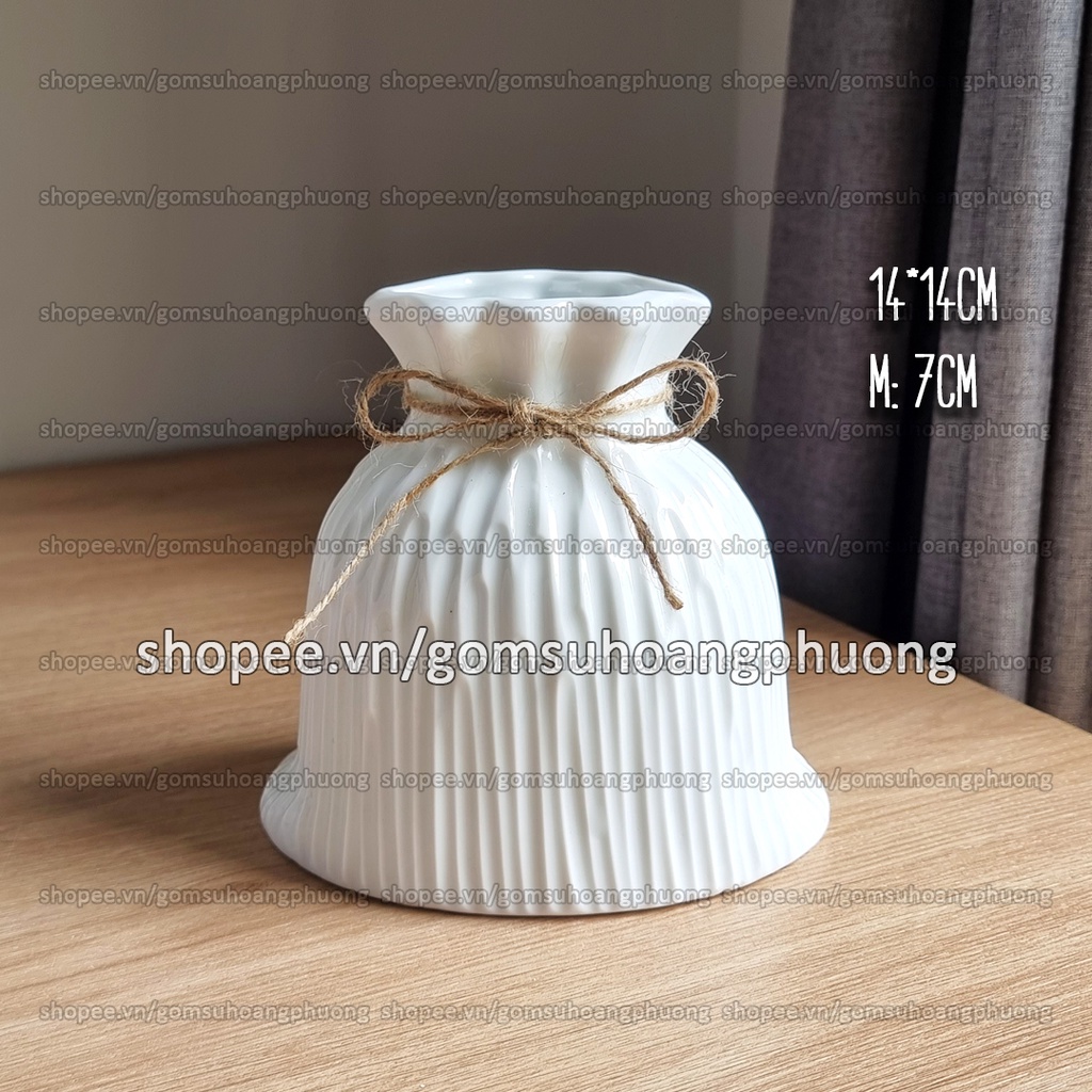 Lọ hoa sứ trắng men mát thắt nơ - Bát Tràng