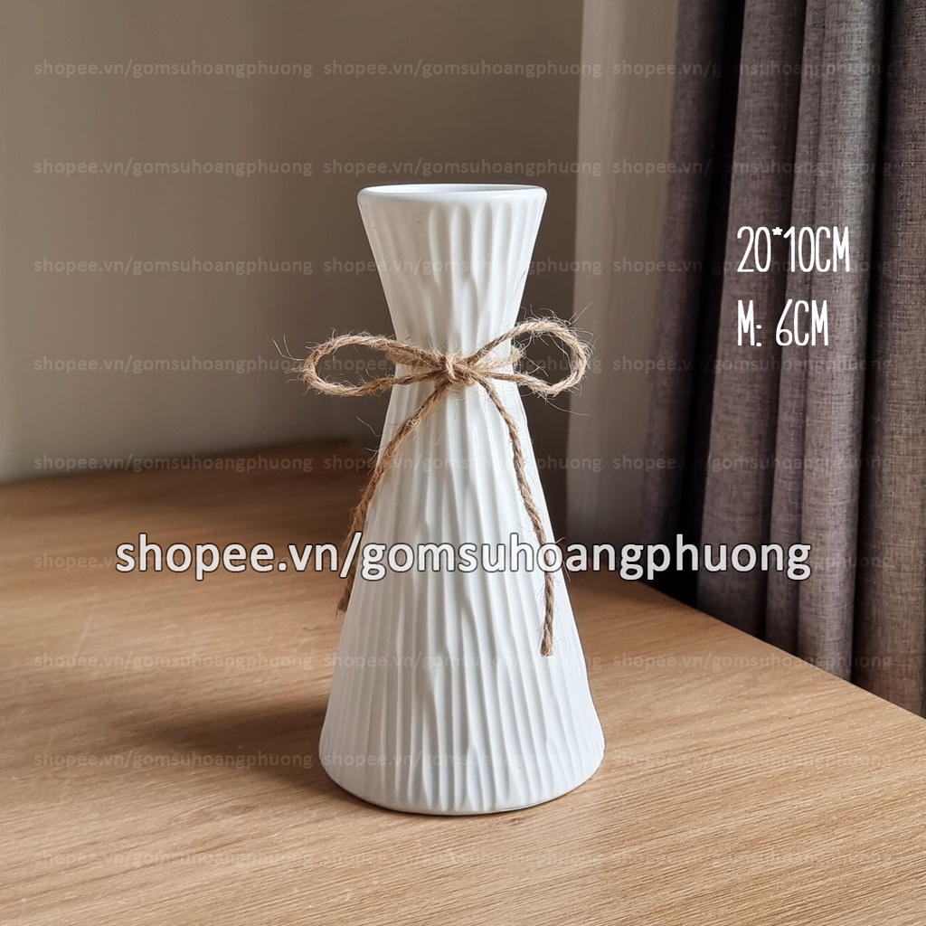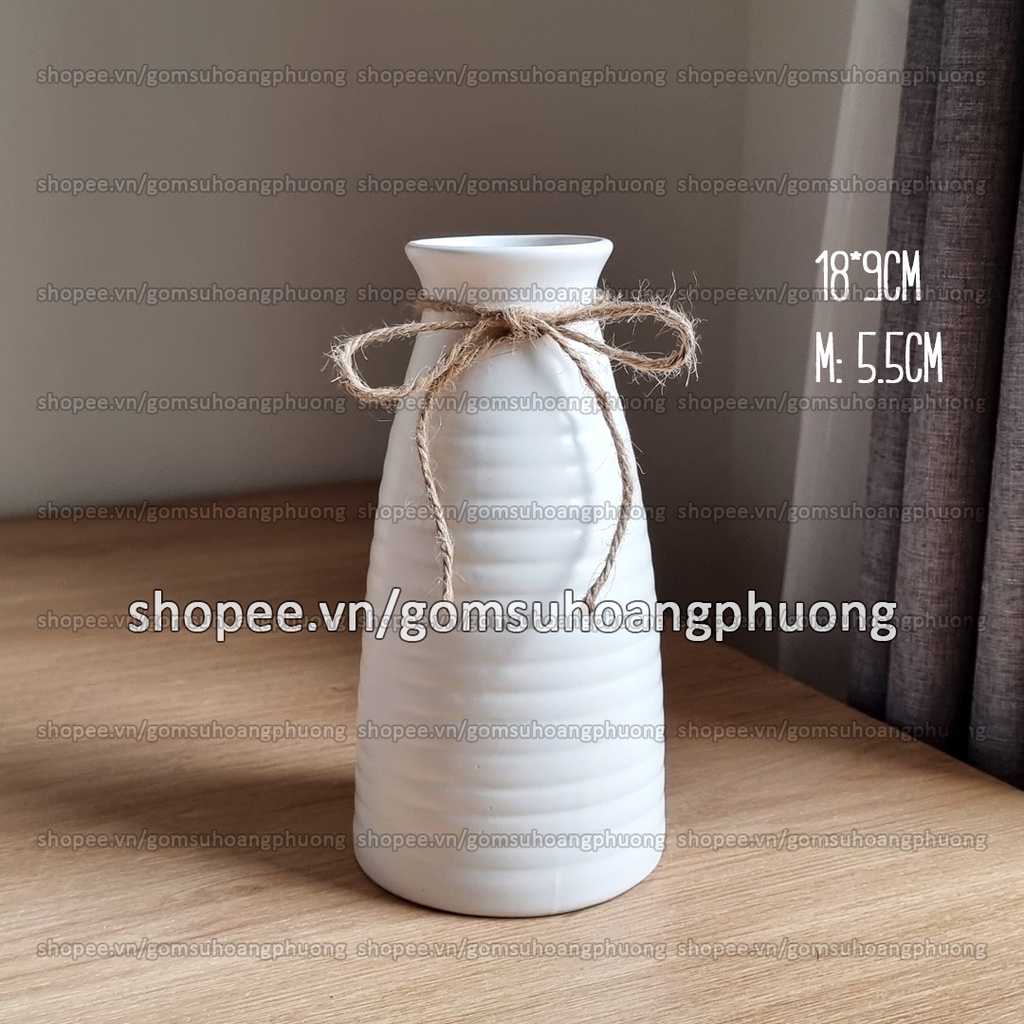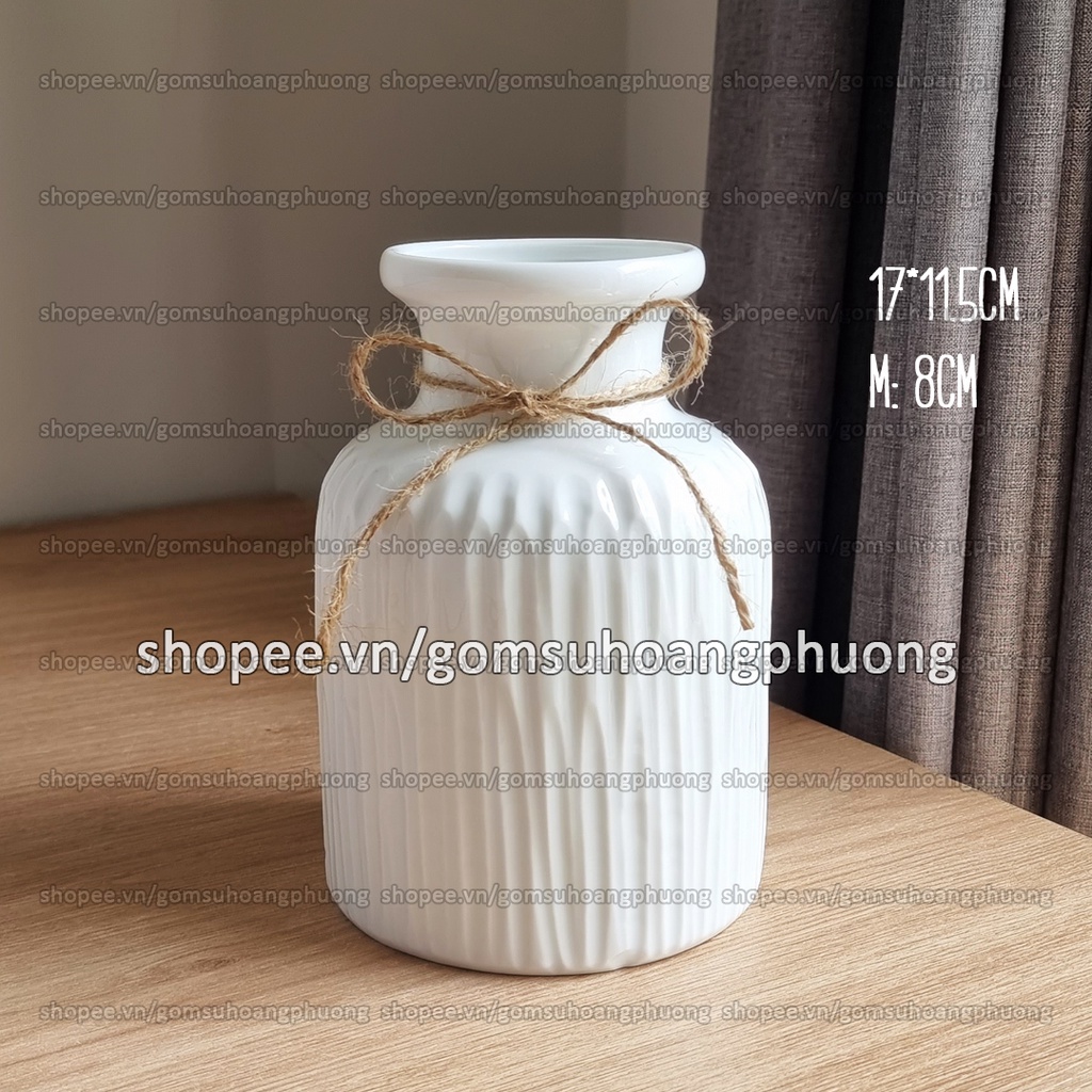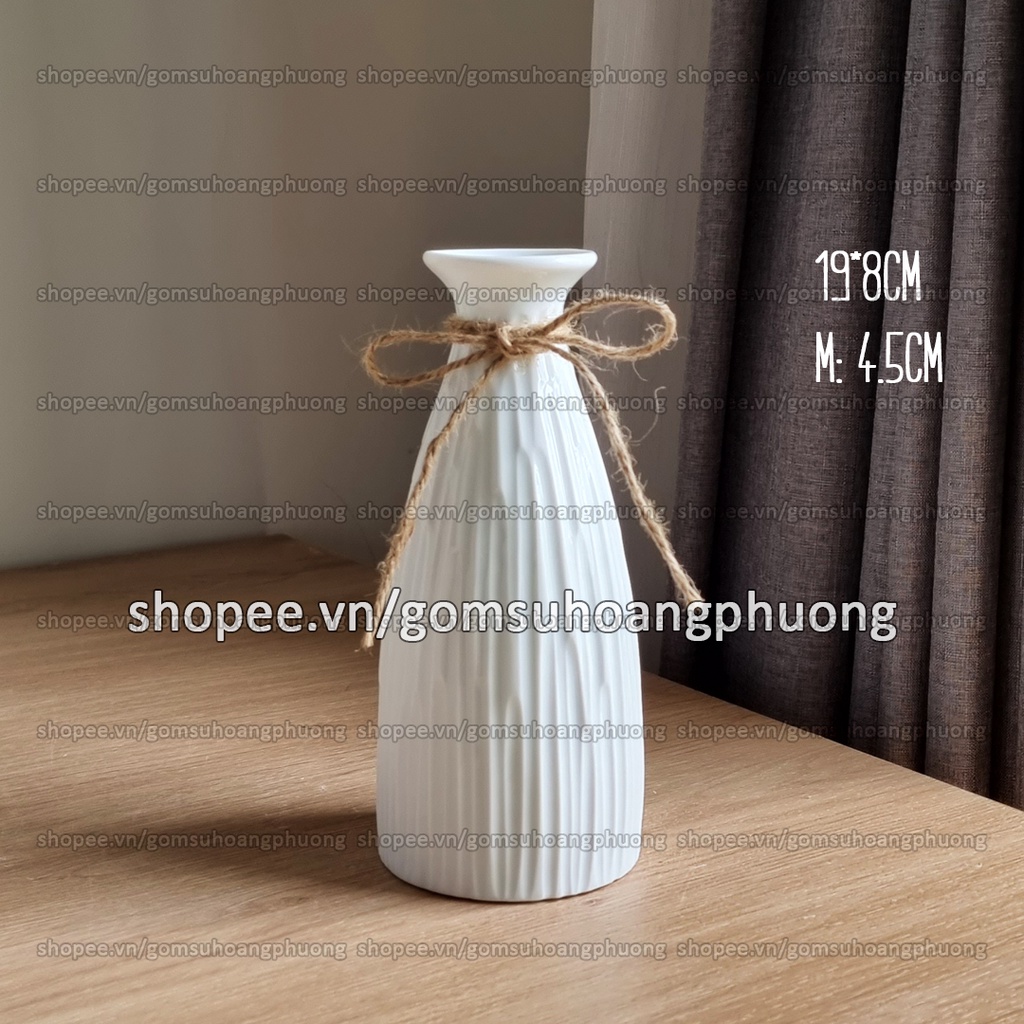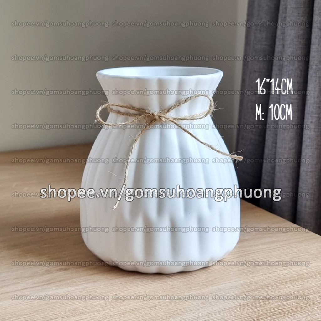 Lọ hoa sứ trắng men mát thắt nơ - Bát Tràng