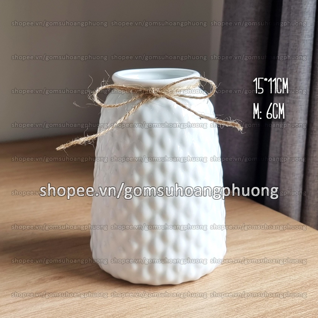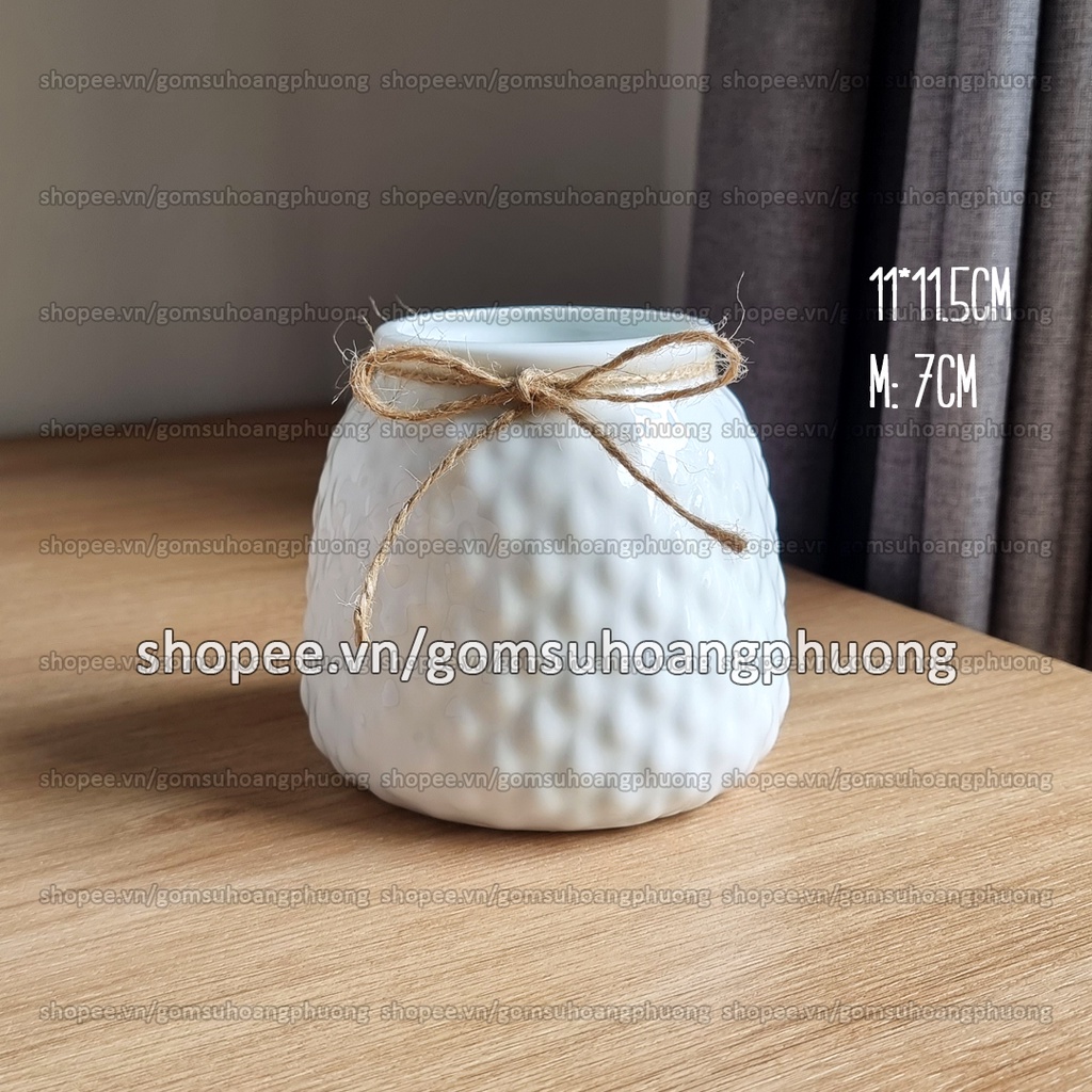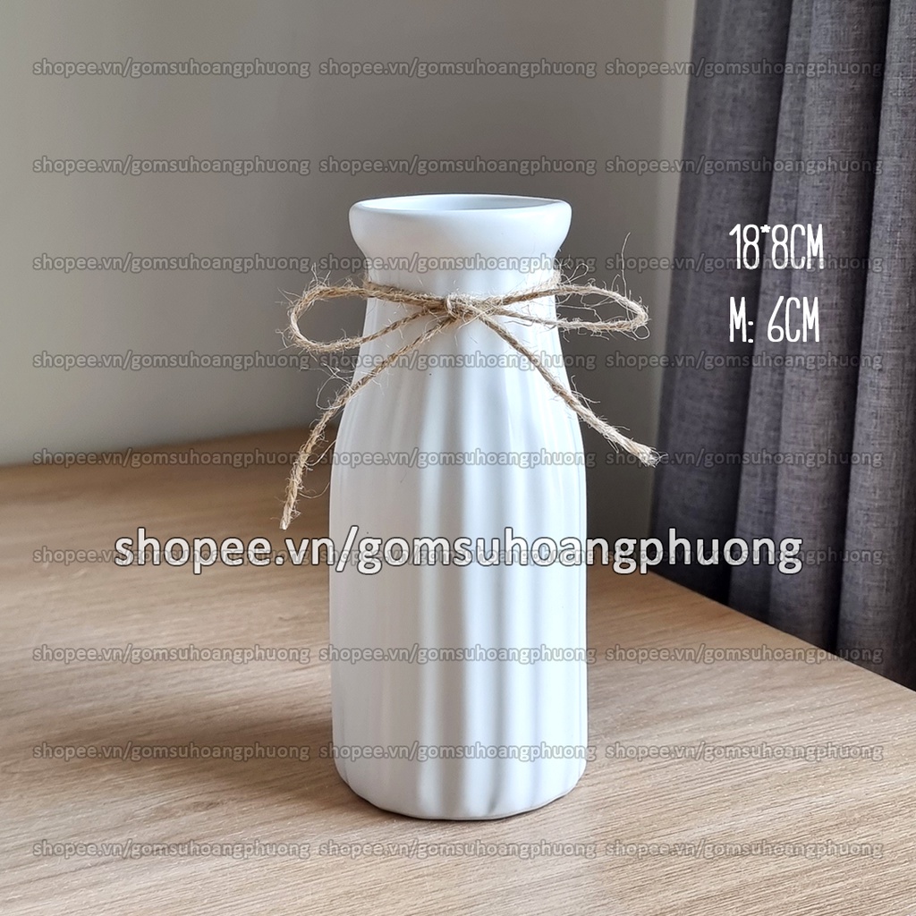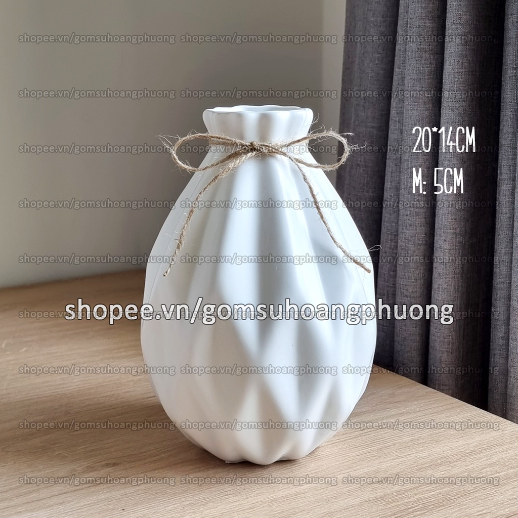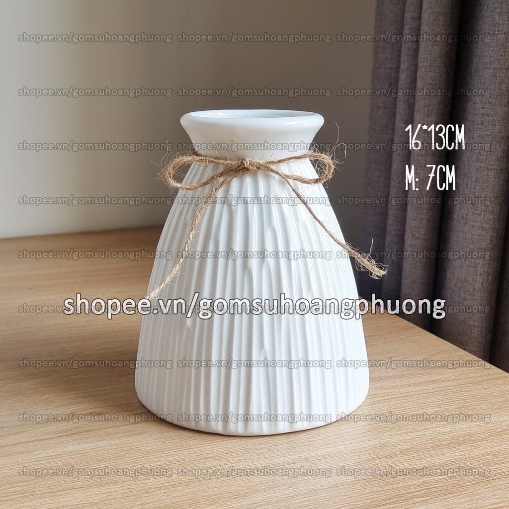 Lọ hoa sứ trắng men mát thắt nơ - Bát Tràng