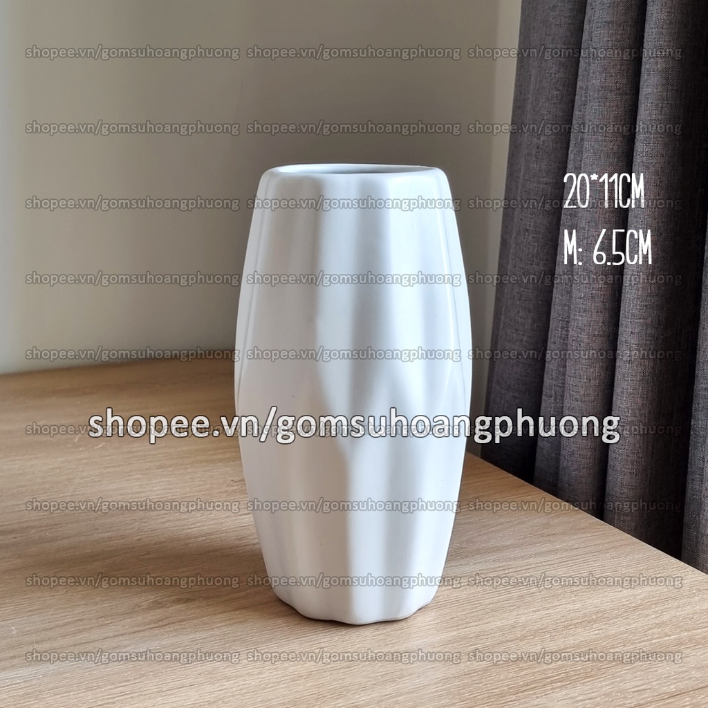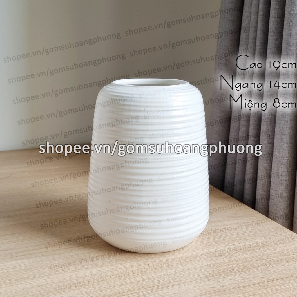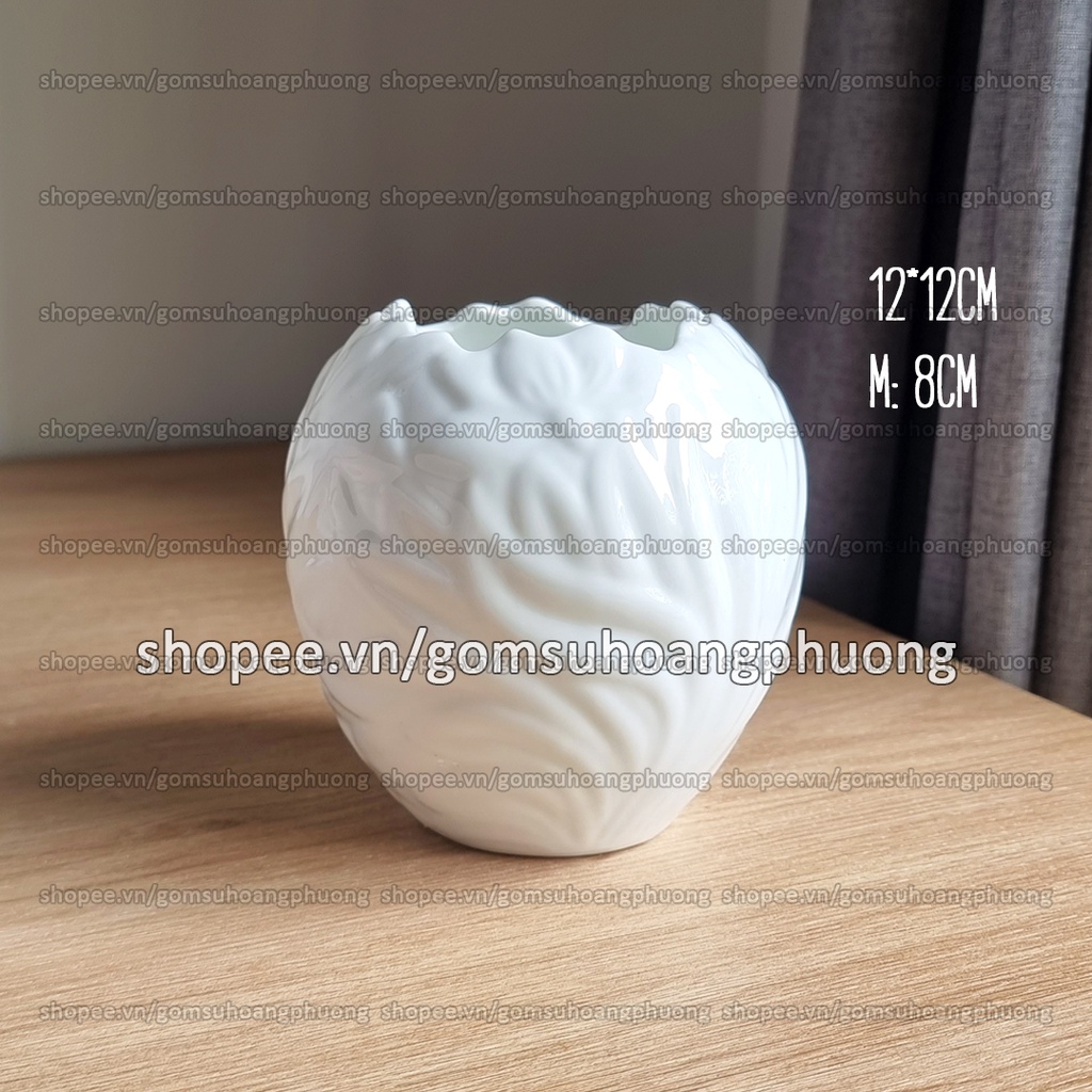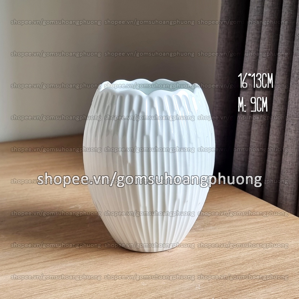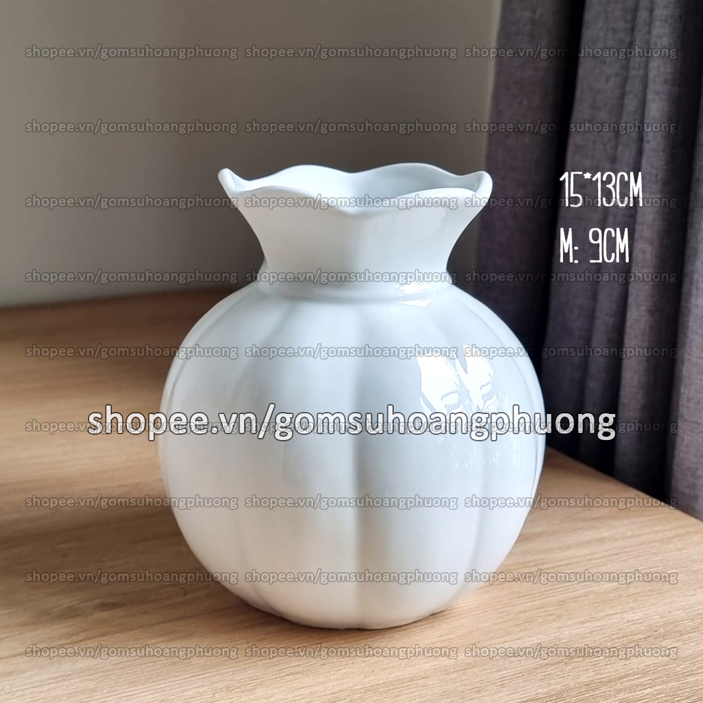 Lọ hoa sứ trắng men mát thắt nơ - Bát Tràng