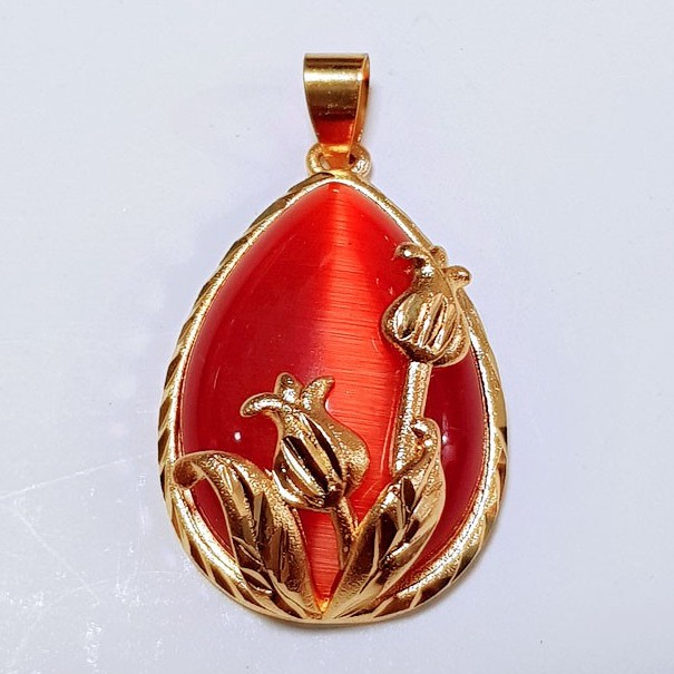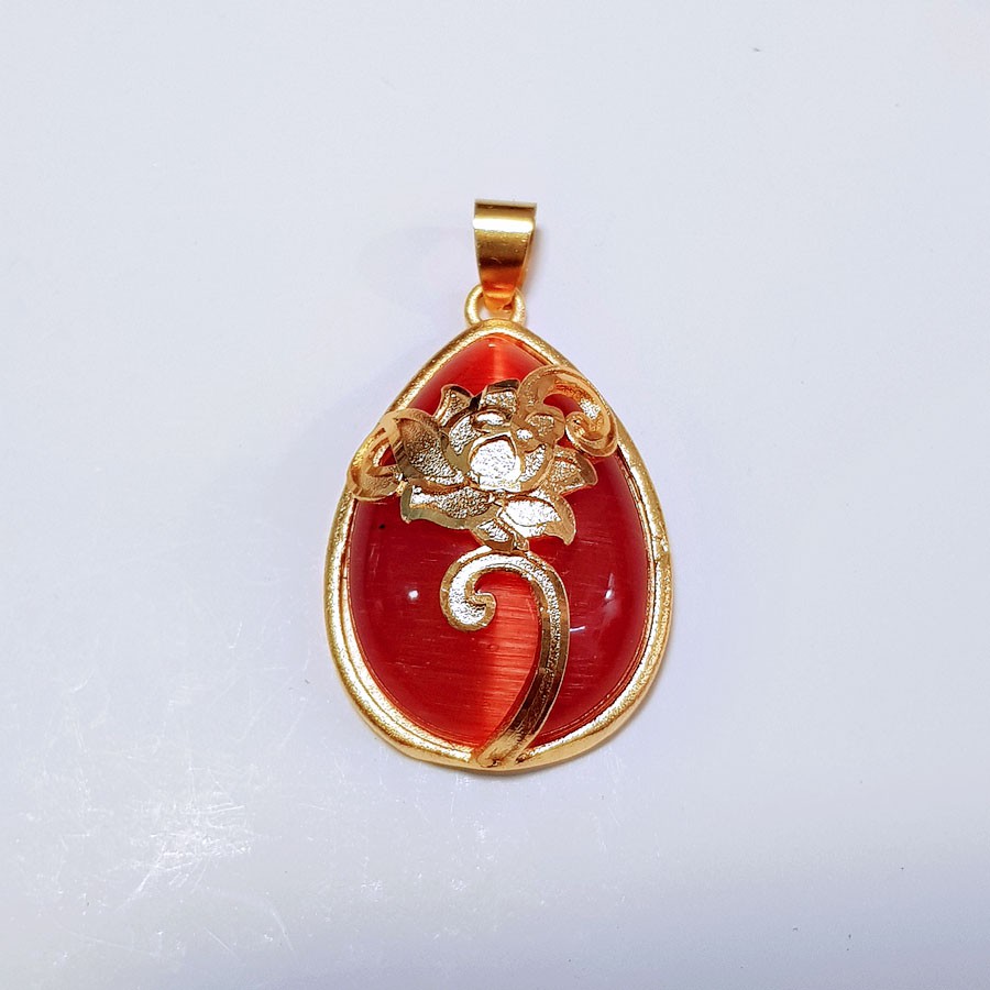 Phụ kiện trang sức (DIY) - Mặt dây chuyền vòng cổ đá mắt mèo Đỏ ngọc giọt nước - M23D