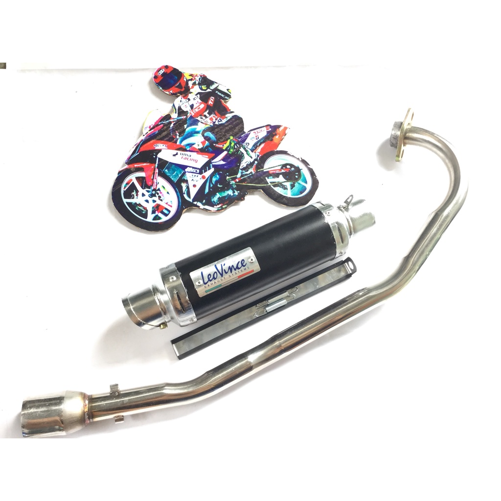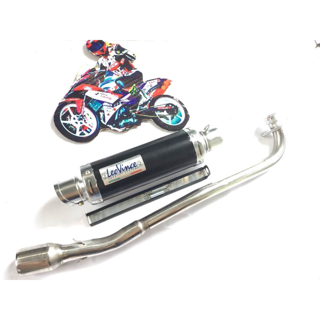Pô Leovince ĐEN full cổ 1 khúc gắn cho nhiều loại xe - có tiêu - Pass treo lò xo đầy đủ