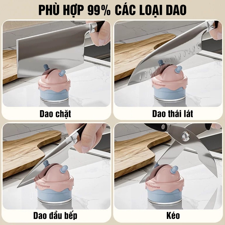 Dụng cụ mài dao kéo mini kiểu dáng ly kem dễ thương chất liệu bền thiết kế đế dạng cốc hút chân không chắc chắn - UF701