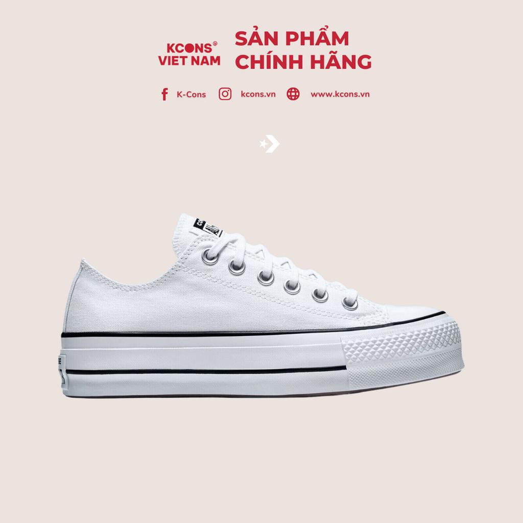 Chuck All Star Canvas Platform White Low Top - Giày Converse Đế Cao 560251C