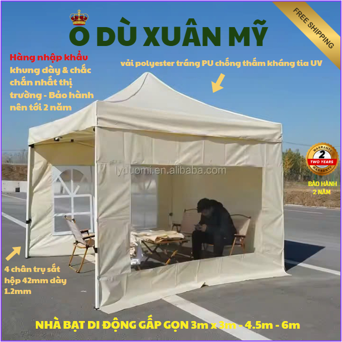 Nhà Bạt Di Động Gấp Gọn Khung Sắt Hộp 42mm dày 1.2mm Vải Chống Dùng Cho Sự Kiện,Bán Hàng..Bảo Hành 2Y