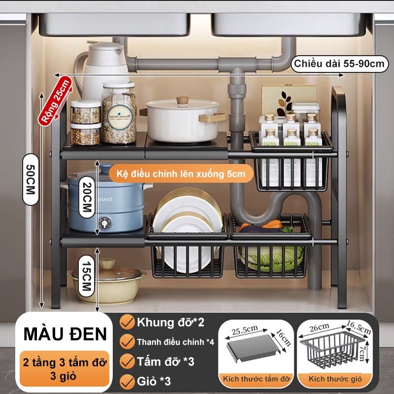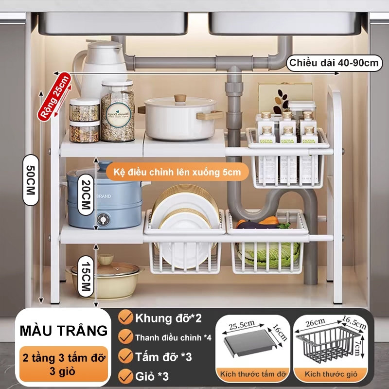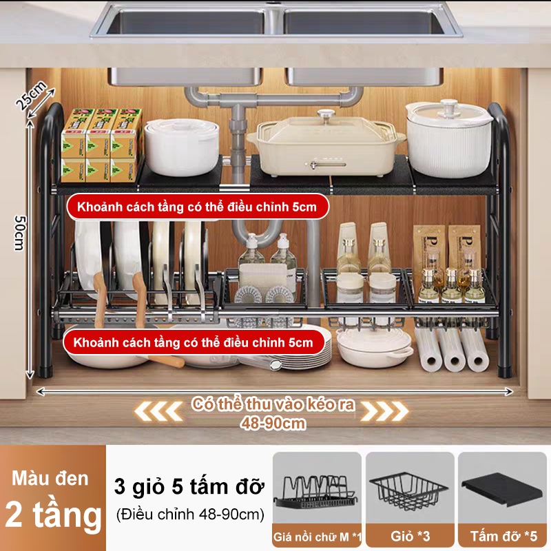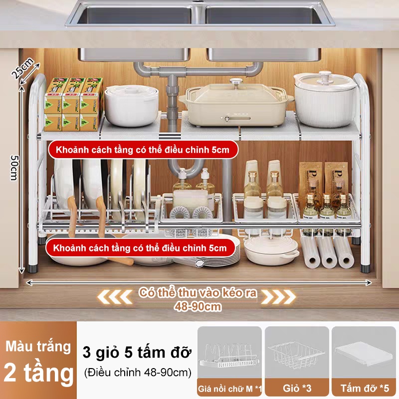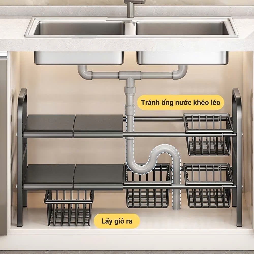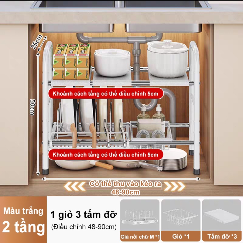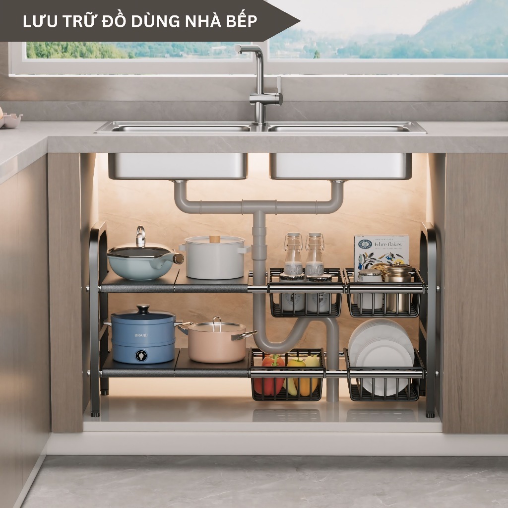 STA-Kệ Gầm Bếp 2 Tầng Đa Năng Kệ Để Đồ Nhà Bếp Đa Năng Kệ Để Xoong Nồi, Kệ Gầm Bồn Rửa