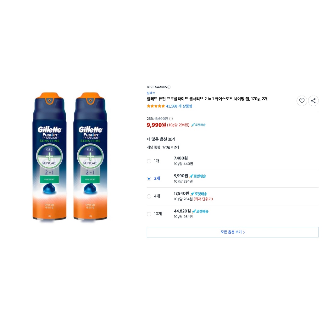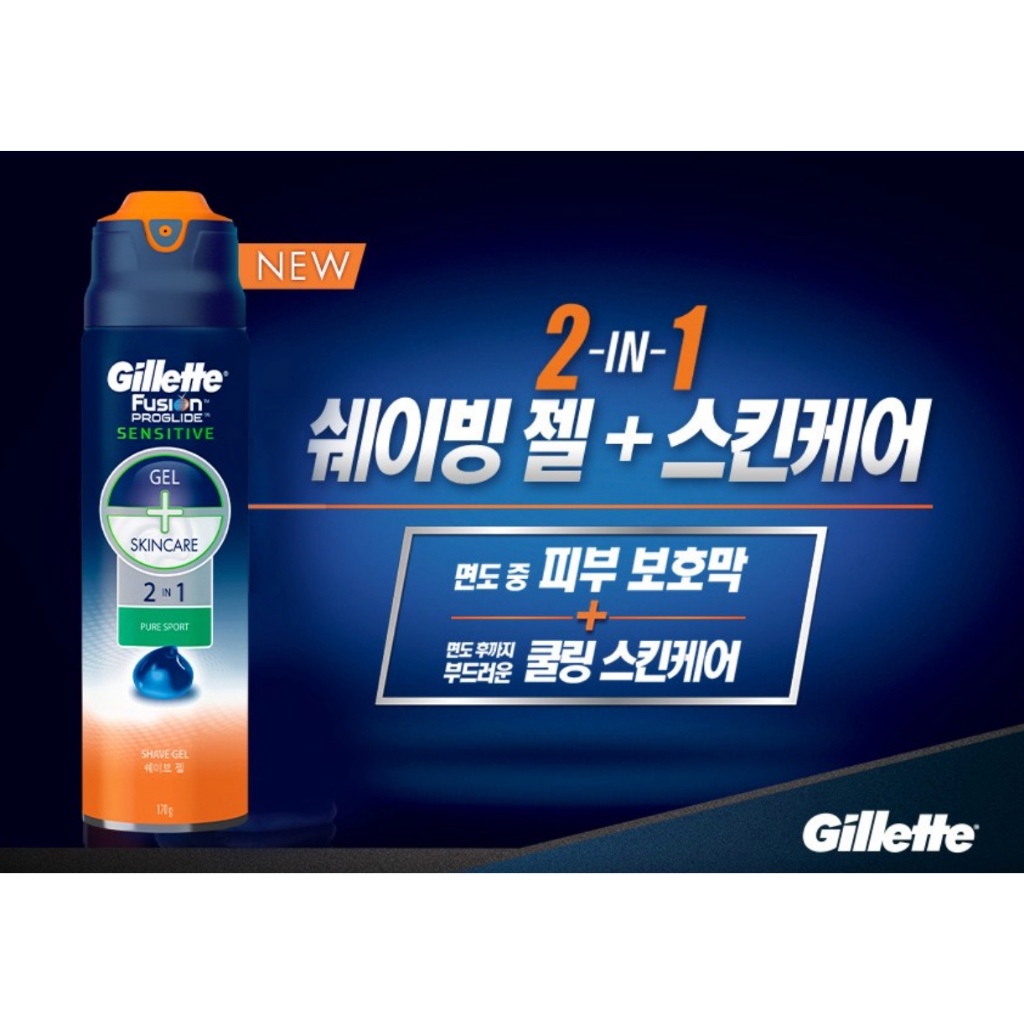 Set Gel cạo râu cao cấp dành cho da nhạy cảm Gillette Fusion ProGlide Sensitive 2 in 1 Pure Sport Shaving Gel (170g x 2)