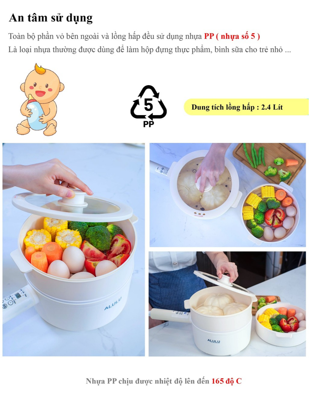 Combo 2 chiếc nồi điện đa năng ALULU, dung tích 3L, kèm khay hấp 2.4L, có chức năng nấu cơm