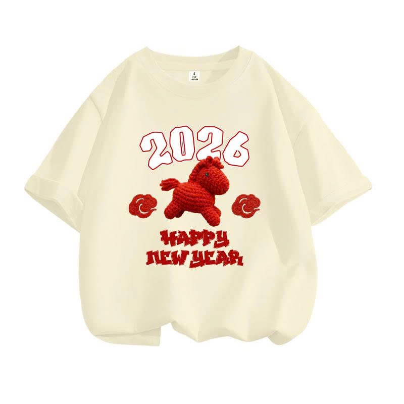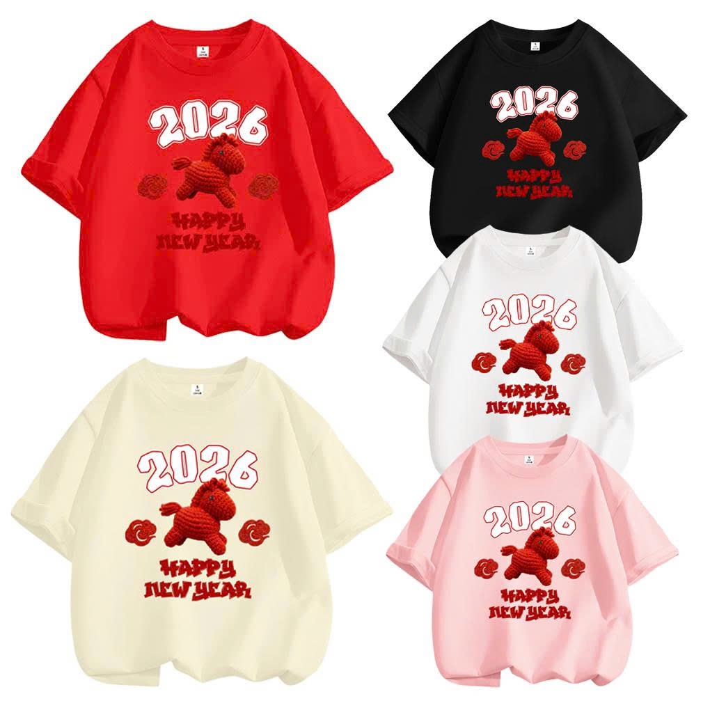 [AT-T2026] Áo thun TẾT 2026 ĐÁNG YÊU HAPPY NEW YEAR in hình - form Unisex Nam Nữ dễ mặc size 8-97kg