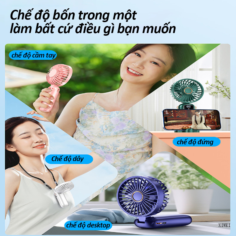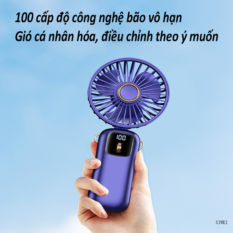 Quạt cầm tay Mini có thể gập lại, Quạt điện tích hợp, 100 cấp độ gió, Dung lượng pin 18000mAh