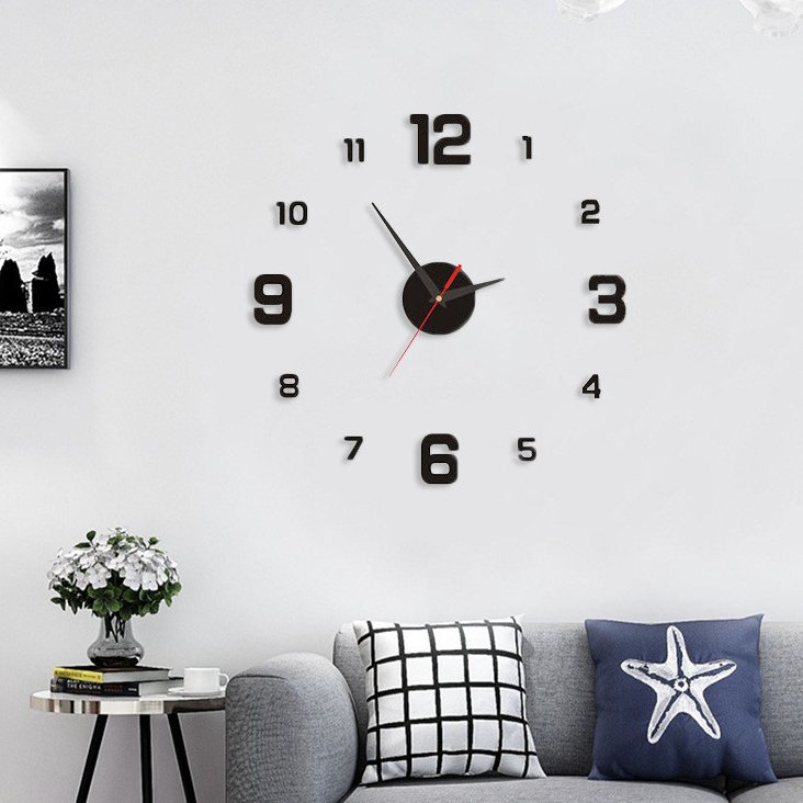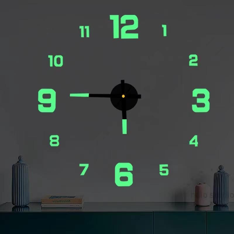 Đồng Hồ Treo Tường Lớn 3D Dạ Quang Không Khung Đồng Hồ Treo Tường Đồng Hồ Kỹ Thuật Số Dán Tường Im Lặng Đồng Hồ Cho Gia Đình Phòng Khách duvar saati
