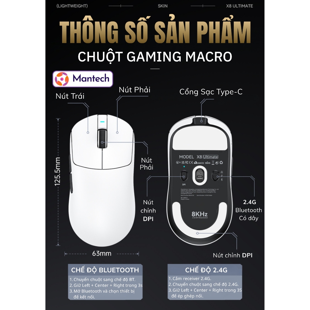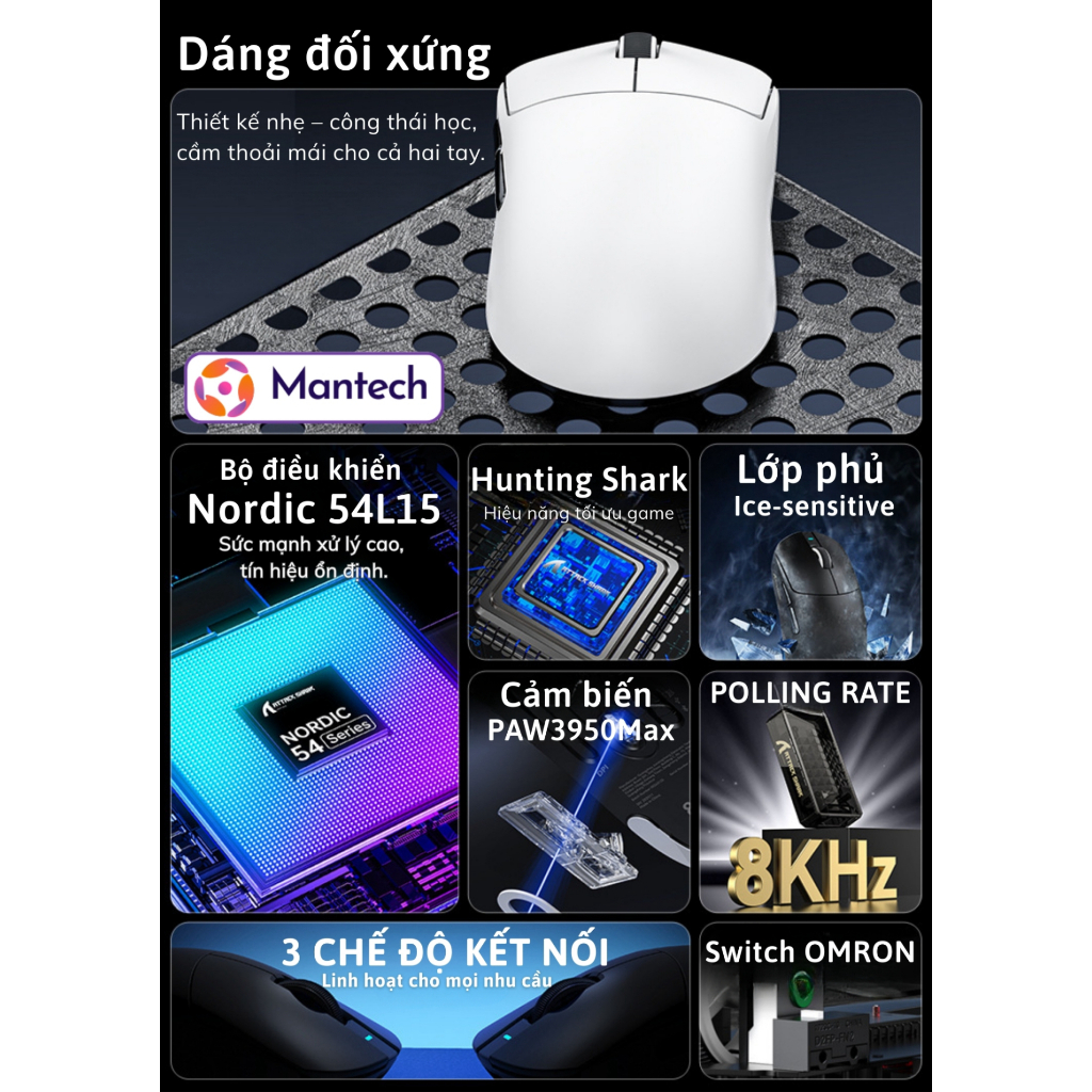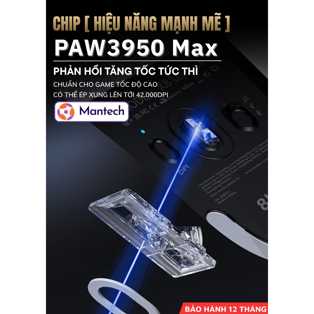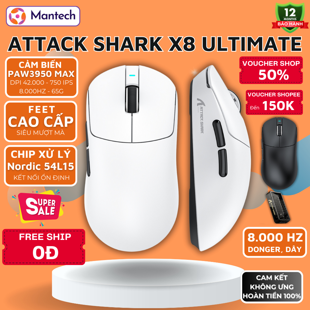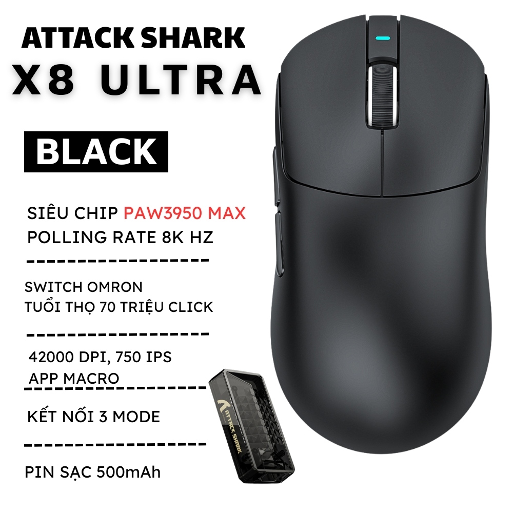Chuột Gaming Không Dây Attack Shark X8 Ultimate – PAW3950Max, 8KHz, Pin 800mAh, Chip Nordic 54L15