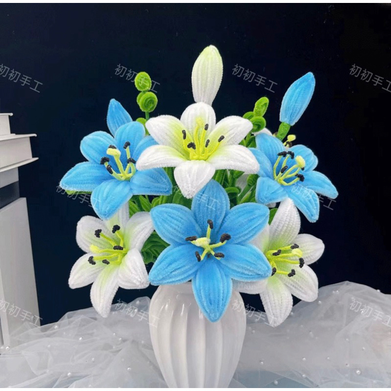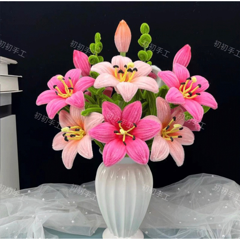 Set vật liệu làm bình hoa ly S0034 bằng kẽm nhung hoa trang trí handmade diy có hướng dẫn